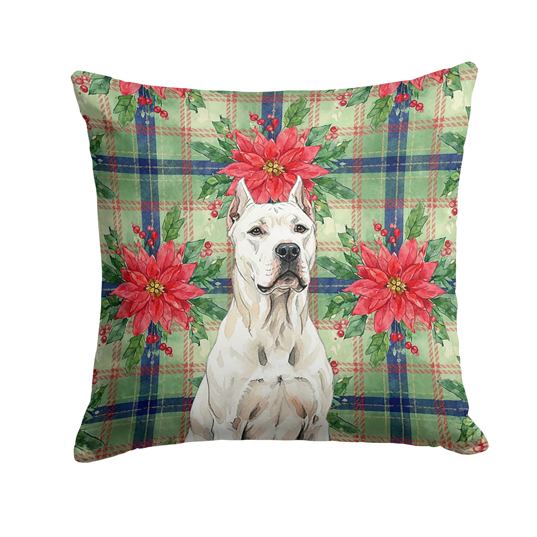 Throw Pillow featuring breed specific Dogo Argentino artwork. Celebrate Christmas with this Christmas Pillow. Add a touch of vibrancy and comfort to your outdoor seating with Caroline's Treasures Fabric Decorative Pillow. Measuring approximately 14 inches by 14 inches, this outdoor pillow is crafted to elevate the appeal of your patio furniture, infusing it with vivid color and artistic flair. The pillow includes a 100% Polyester Fabric sham filled with a quality pillow form to provide superior comfort. Innovatively made from our brand new material, specifically woven for its water resistance, this pillow is designed for durability. The soft canvas fabric offers versatility in use, fit for your indoor couch or your outdoor patio, porch, or veranda. The fabric is dyed with colorfast dyes built for resilience against weather conditions, ensuring the pillow retains its beauty over time. Constructed by sewing three fabric pieces to create a sham, the polyester insert is then nestled inside to form the pillow, resulting in an overstuffed pillow that maintains its shape. Both the sham and the pillow insert are proudly made in the United States. As the pillows are handcrafted, there may be minor variations in size, further enhancing their unique charm. Experience comfort in style with Caroline's Treasures Fabric Decorative Pillow.