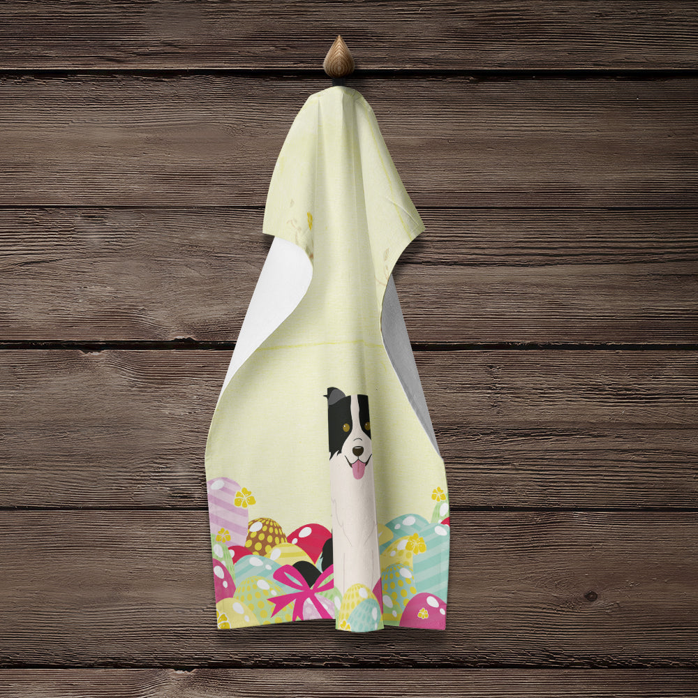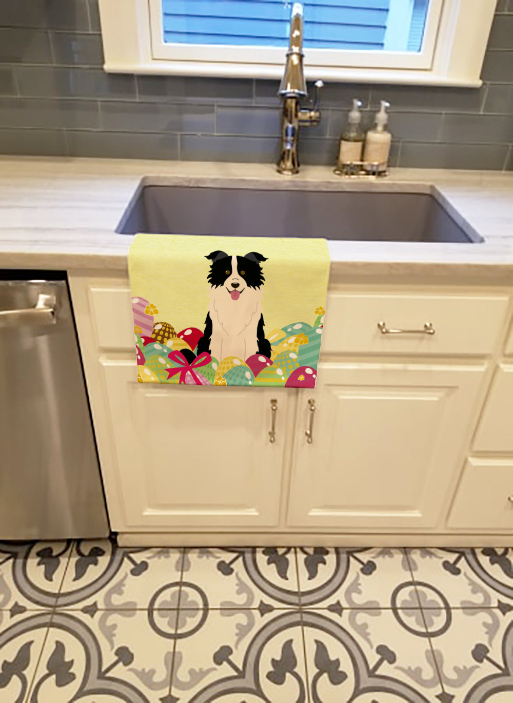Decorate your space with our Easter Border Collie artwork on a Kitchen Towel. Experience the perfect blend of aesthetic appeal and functional excellence with our Plush Velour Kitchen Towels. These are not your ordinary decorative kitchen towels that gather dust. Instead, they are designed to be as practical as they are stylish. The front layer of our towel is constructed from a minky plush polyester, known for its durability and color retention. Unlike conventional kitchen towels, the artwork on our towels is dyed directly into the fabric, ensuring vibrant colors that last. Polish your glassware to a brilliant sparkle using the plush front side of the towel. Flip to the back, crafted from 100% cotton terry loop, to exploit its exceptional absorbency for drying dishes or wiping down counters. Our kitchen towels redefine the concept of functional art, offering lasting quality that maintains the towel's shape over time. Measuring 15 inches by 25 inches and weighing 2.3 lbs per dozen, these towels deliver an overwhelming sensory experience with their soft, plush, and smooth texture. The edges are meticulously finished with binding, enhancing their durability and visual appeal. For your convenience, these towels are machine washable and can be dried on low heat. After the first wash, the top fabric becomes even softer and fluffier, eliminating the need for ironing. Treat your kitchen to the luxury and functionality it deserves with our plush velour kitchen towels.