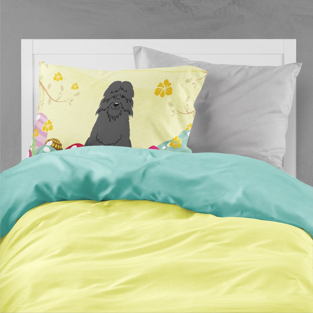 Decorate your space with our Easter Bouvier des Flandres artwork on a Pillowcase. Experience an upgrade in your sleeping comfort with our Fabric Standard Pillowcase, designed to balance style, comfort, and practicality. Showcasing vibrant artwork on the front and a standard white on the back, this pillowcase is more than a functional item�it's an expression of your personal style. Crafted from premium moisture-wicking material, our pillowcase ensures a pleasant sleeping experience. The breathable performance fabric allows for excellent air circulation, keeping you cool and comfortable throughout the night while also demonstrating exceptional quality. This pillowcase, measuring 30 x 20.5 inches with a slender 0.15 inch thickness, and weighing only 0.25 lbs, fits a standard pillow perfectly. Maintaining our pillowcase is hassle-free. It requires no ironing�simply wash in cold water and dry at medium heat. Bring art and luxury into your bedroom with our Fabric Standard Pillowcase. Its unique design and top-tier fabric contribute to a relaxing and rejuvenating sleep experience. Brighten your bedroom decor while enhancing your sleep with our high-performance pillowcase.