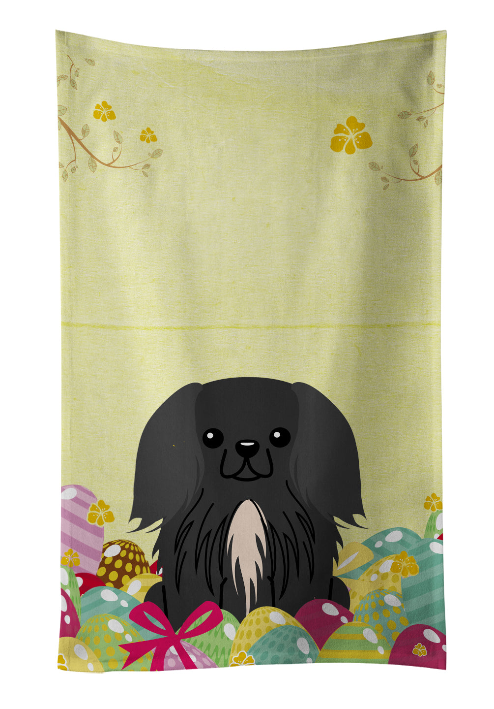 Decorate your space with our Easter Pekingese artwork on a Kitchen Towel. Experience the perfect blend of aesthetic appeal and functional excellence with our Plush Velour Kitchen Towels. These are not your ordinary decorative kitchen towels that gather dust. Instead, they are designed to be as practical as they are stylish. The front layer of our towel is constructed from a minky plush polyester, known for its durability and color retention. Unlike conventional kitchen towels, the artwork on our towels is dyed directly into the fabric, ensuring vibrant colors that last. Polish your glassware to a brilliant sparkle using the plush front side of the towel. Flip to the back, crafted from 100% cotton terry loop, to exploit its exceptional absorbency for drying dishes or wiping down counters. Our kitchen towels redefine the concept of functional art, offering lasting quality that maintains the towel's shape over time. Measuring 15 inches by 25 inches and weighing 2.3 lbs per dozen, these towels deliver an overwhelming sensory experience with their soft, plush, and smooth texture. The edges are meticulously finished with binding, enhancing their durability and visual appeal. For your convenience, these towels are machine washable and can be dried on low heat. After the first wash, the top fabric becomes even softer and fluffier, eliminating the need for ironing. Treat your kitchen to the luxury and functionality it deserves with our plush velour kitchen towels.