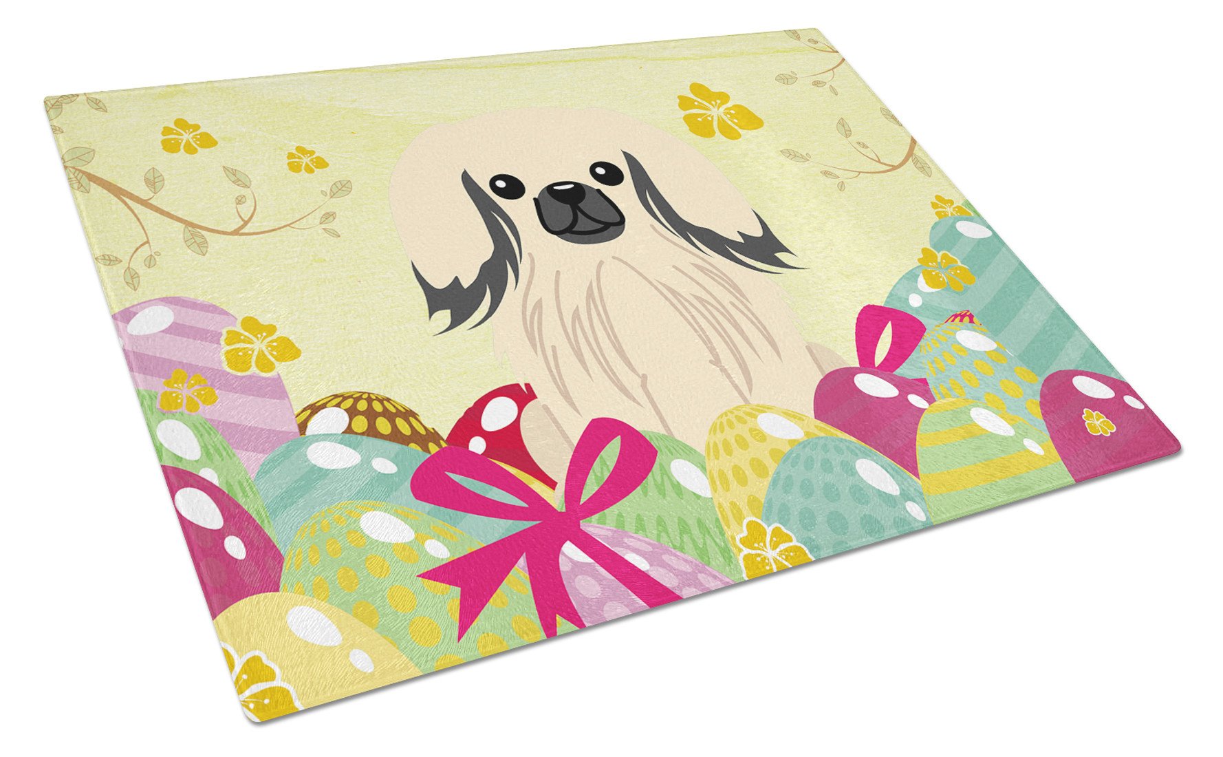Easter Eggs Pekingnese Cream Glass Cutting Boards – Durable, Decorative Kitchen Art Large BB6106LCB