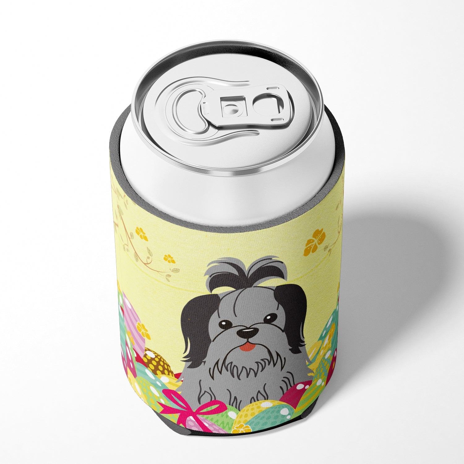 Decorate your space with our Easter Shih Tzu artwork on a Hugger. Introducing our Can or Bottle Hugger, a must-have accessory for your beverage enjoyment. Designed to perfectly fit any standard 12-ounce can, this can cooler is the ideal companion to keep your soda, beer, or any drink of your choice at the perfect temperature. Our can hugger is not just functional, it's a work of art. Featuring full-color artwork that's permanently dyed into the foam, this hugger promises a design that's fade-resistant and made to last, making your beverage stand out in style. The design isn't silk-screened, which ensures the vibrancy of the colors, offering you a long-lasting, appealing aesthetic. What sets our can hugger apart is its high-quality foam fabric, which is not only durable but also machine washable for easy maintenance. Whether you call it a huggie, can coolie, can cozie, or beer holder, this drink sleeve brings style and function together. Proudly designed, printed, and sewn in the USA, our Can or Bottle Hugger is an ideal addition to your beverage experience. Match it with one of our insulated coolers for a complete gift set, adding flair and convenience to your drink enjoyment.