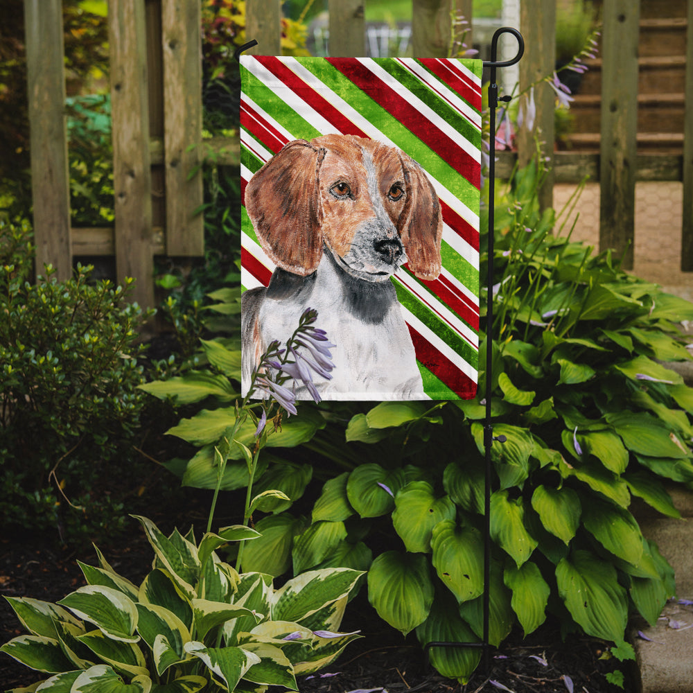 Decorate your space with our Christmas English Foxhound artwork on a Garden Flag. Enhance the beauty of your garden, patio, or yard with Caroline's Treasures Decorative Garden Flag, proudly made in the USA. Crafted from two pieces of thick, double-sided polyester fabric, this 2-ply garden flag is designed to withstand various weather conditions, making it water-resistant and weatherproof. Featuring correctly readable words on both sides, this garden flag offers a delightful visual experience from any angle. With its heavier weight, it stands out among other garden flags, ensuring stability and durability even in wind, rain, and snow. Measuring approximately 11 1/4 inches by 15 1/2 inches, this flag allows you to personalize your outdoor decor. It comes with a 1 1/2-inch sleeve sewn in, allowing easy attachment to any standard garden flag stand or garden size porch hanger (sold separately). Make a statement in your outdoor space with Caroline's Treasures Decorative Garden Flag, a vibrant and high-quality flag that adds color and personality to your surroundings. Proudly made in the USA, it's a symbol of quality craftsmanship and attention to detail.