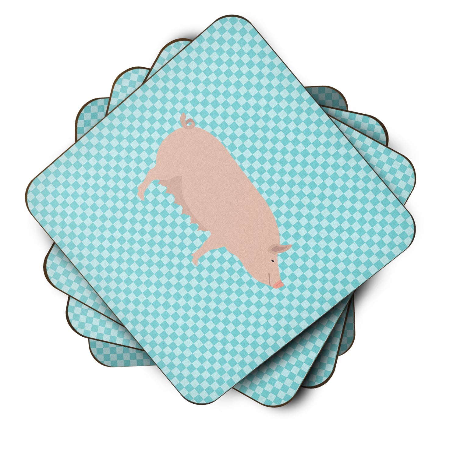 English Large White Pig Blue Check Foam Coaster  BB8112FC