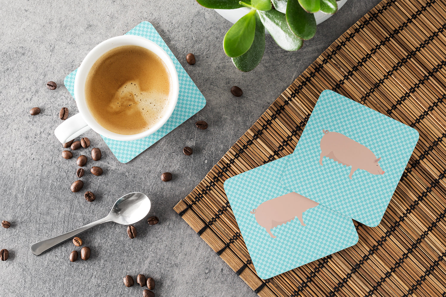 English Large White Pig Blue Check Foam Coaster BB8112FC