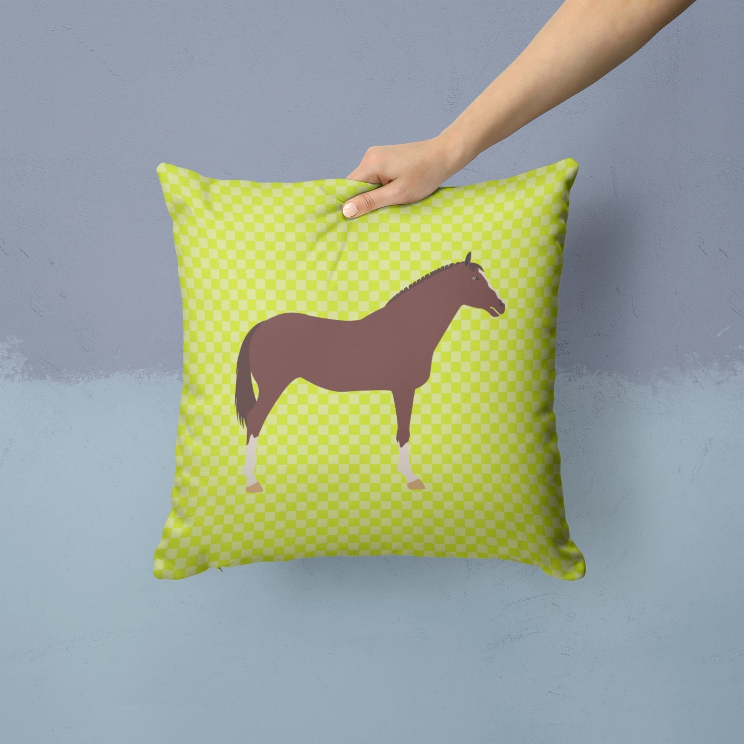 English Thoroughbred Horse Green Throw Pillow - 14x14 Decorative Pillow – Art for Your Home & Patio BB7739PW1414