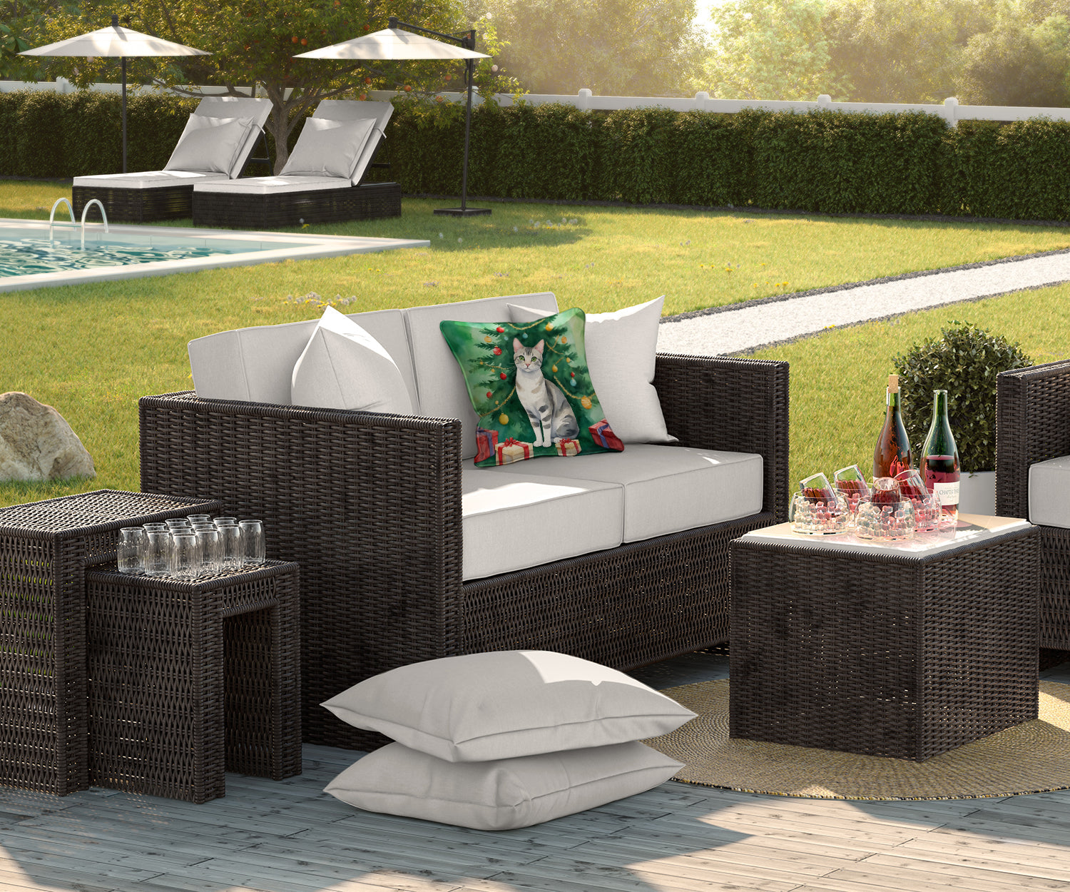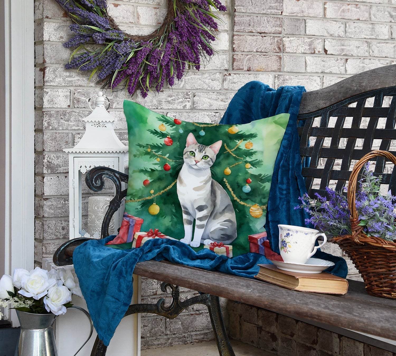 Throw Pillow featuring breed specific European Shorthair artwork. Celebrate Christmas with this Christmas Pillow. Revitalize your outdoor or indoor living space with Caroline's Treasures 18x18 Fabric Decorative Pillow. With a generously sized dimension of approximately 18 inches by 18 inches, this pillow makes a comfortable and aesthetic addition to any seating area. Made from a unique, water-resistant material developed by Caroline's Treasures, the pillow sham is 100% polyester fabric that's durable and ready to weather any condition. Its vibrant, full-color artwork will not fade over time as it is dyed with color-fast dyes. Whether you place it on your patio furniture, porch, veranda, or indoor couch, its soft canvas fabric ensures a cozy experience. The pillow is handcrafted in the United States, featuring a sham created from three pieces of fabric and a polyester insert for enduring shape and overstuffed comfort. Despite being robustly built to endure the outdoors, it is as soft and snug as your favorite indoor cushions. Please note, as all our pillows are handmade, sizes may vary slightly, adding to the charm of this unique decorative item.