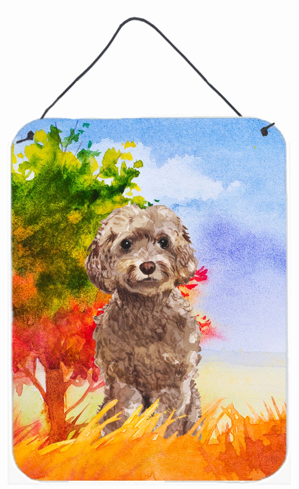 Decorate your space with our Labradoodle artwork on a Metal Print. Bring a bit of Fall into your home with a Fall Metal Print. Spruce up your space with our Indoor or Outdoor Aluminum Artwork Prints. Designed to brighten your kitchen, bathroom, office, or outdoor areas like patios and porches, these prints offer a unique way to decorate your home or workspace. Measuring 12 by 16 inches, the prints are vibrant, full color, and bring an element of artistry to any setting. What makes these prints special is their durability and resistance to the elements. If placed outside, they can withstand direct sunlight for a considerable time before showing signs of fading. Crafted from rust and fade-resistant aluminum, these prints are built to last and maintain their vibrant colors. Each print comes with a black hanging rope and rounded corners for safety. The back of the print showcases a brushed silver color, adding a touch of sophistication. The lightweight design allows easy hanging with virtually any nail or screw, making installation a breeze. Whether indoors or outdoors, these prints add a distinctive touch to any space.