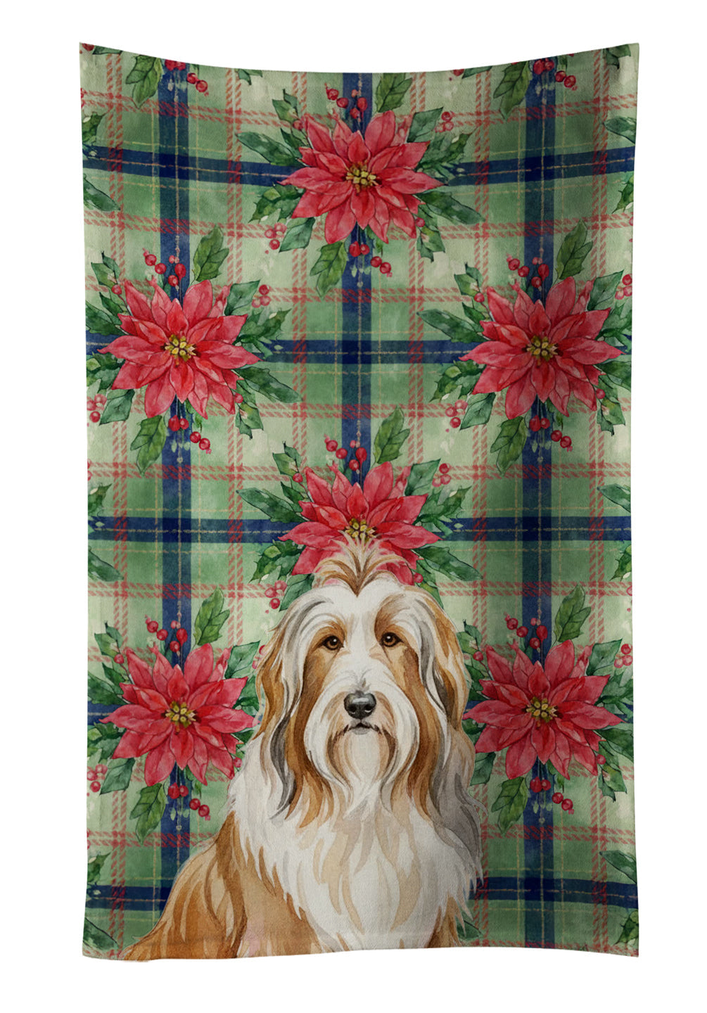 Fawn Bearded Collie Christmas PoinsettIas Kitchen Towel