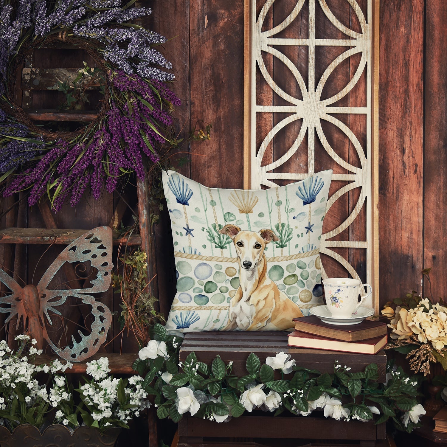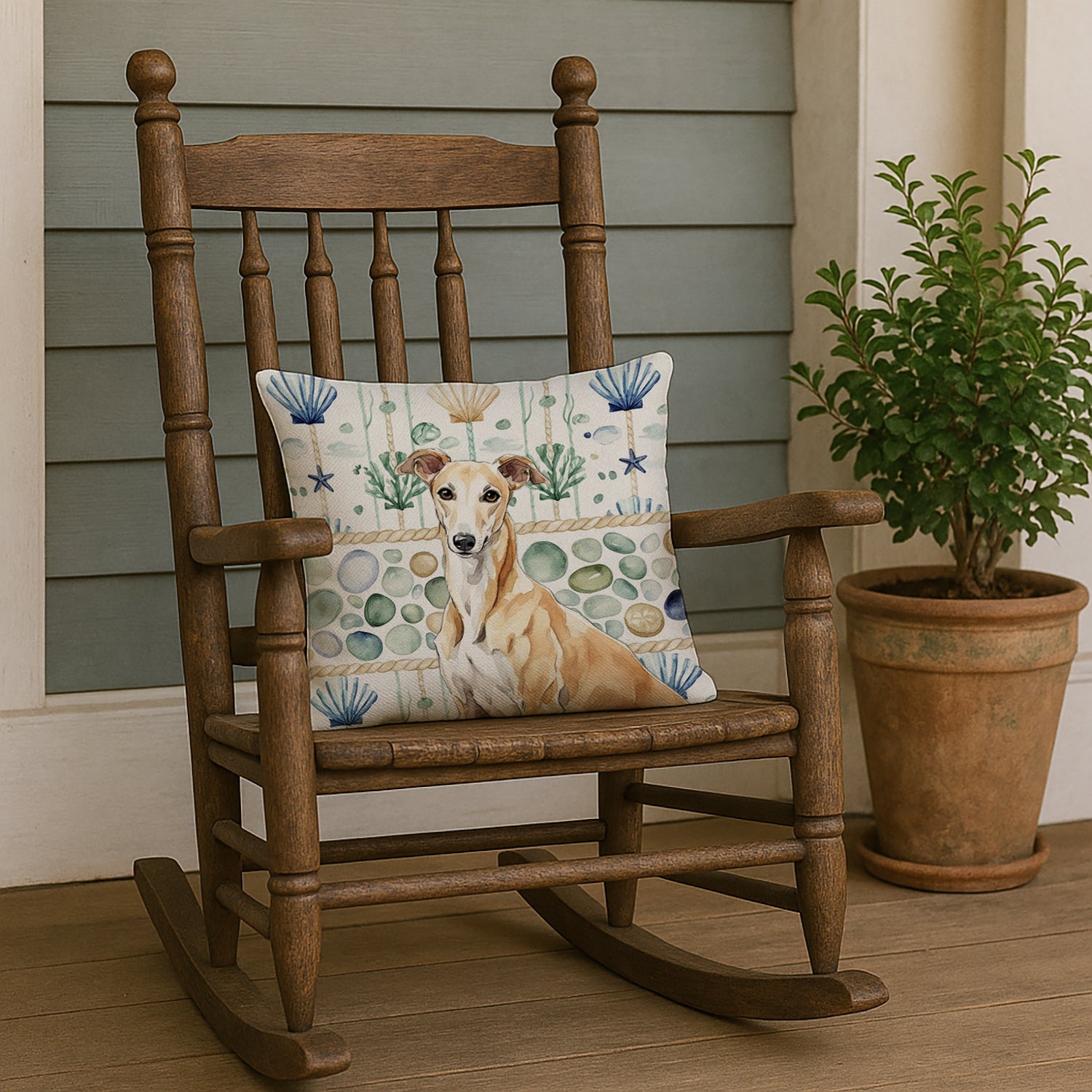Fawn Greyhound Coastal Sea Glass Throw Pillow