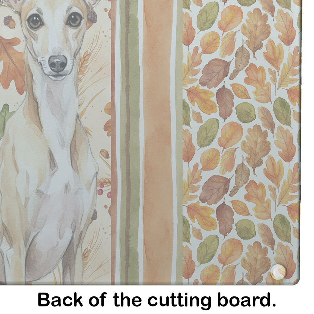 Glass Cutting Board featuring breed specific Italian Greyhound artwork. Celebrate Thanksgiving with this Thanksgiving Cutting Board. Introduce your kitchen to the vibrant, large Decorative Glass Cutting Board from Caroline's Treasures. Crafted from resilient tempered glass, this board is not only a utilitarian necessity but also a colorful art piece. With its generous dimensions of 15 inches in height and 12 inches in length, it offers ample space for all your cutting needs. Every piece showcases captivating artwork from distinguished artists, bringing an aesthetic edge to your kitchen. Beyond its attractive design, this cutting board ensures your countertop stays pristine and unscathed, owing to its heat-resistant properties. Engineered with user convenience in mind, it features non-skid feet for stability, and rounded corners for additional safety. Its robust construction renders it virtually unbreakable, guaranteeing longevity. The board comes with protective feet bumpers, maintaining its position during use. This product is recommended to be hand washed only. Proudly printed and assembled in the United States, this cutting board exemplifies superior craftsmanship. With Caroline's Treasures' Decorative Glass Cutting Board, you're investing in a blend of functionality and artistic flair.
