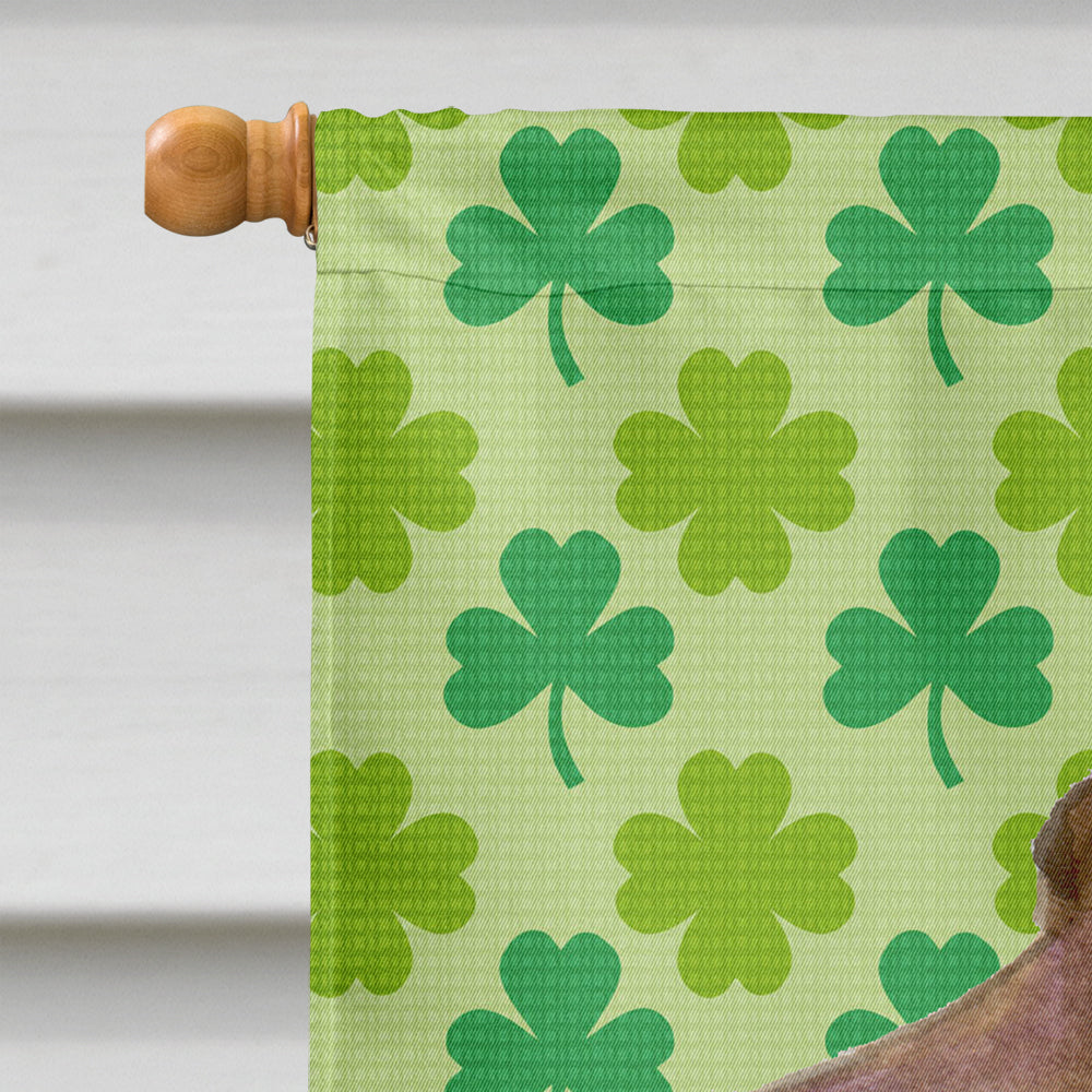 Decorate your space with our St Patrick's Day Field Spaniel artwork on a Large Flag. Presenting our Heavy Duty Polyester House Size Decorative Sleeve Pole Flag, a vibrant addition to enhance the aesthetic appeal of your home. This large decorative flag, measuring approximately 28 x 40 inches, offers ample coverage and visibility. Each flag is meticulously sewn and made individually, ensuring a unique piece that may slightly vary in size. It's a sleeve pole flag, designed to fit a standard decorative flag pole effortlessly. Please note that the flag pole and bracket are not included and should be purchased separately. What sets our flag apart is its dual-sided print. The design is mirrored on both sides of the fabric, allowing for uniform visibility regardless of the angle. Printed in full color, our flag showcases vibrant hues that truly stand out. To ensure lasting vibrancy and durability, the dyes are heat-set into the fabric. This ensures your flag remains bright and captivating through various weather conditions. Elevate the look of your home with our Heavy Duty Polyester House Size Decorative Sleeve Pole Flag!