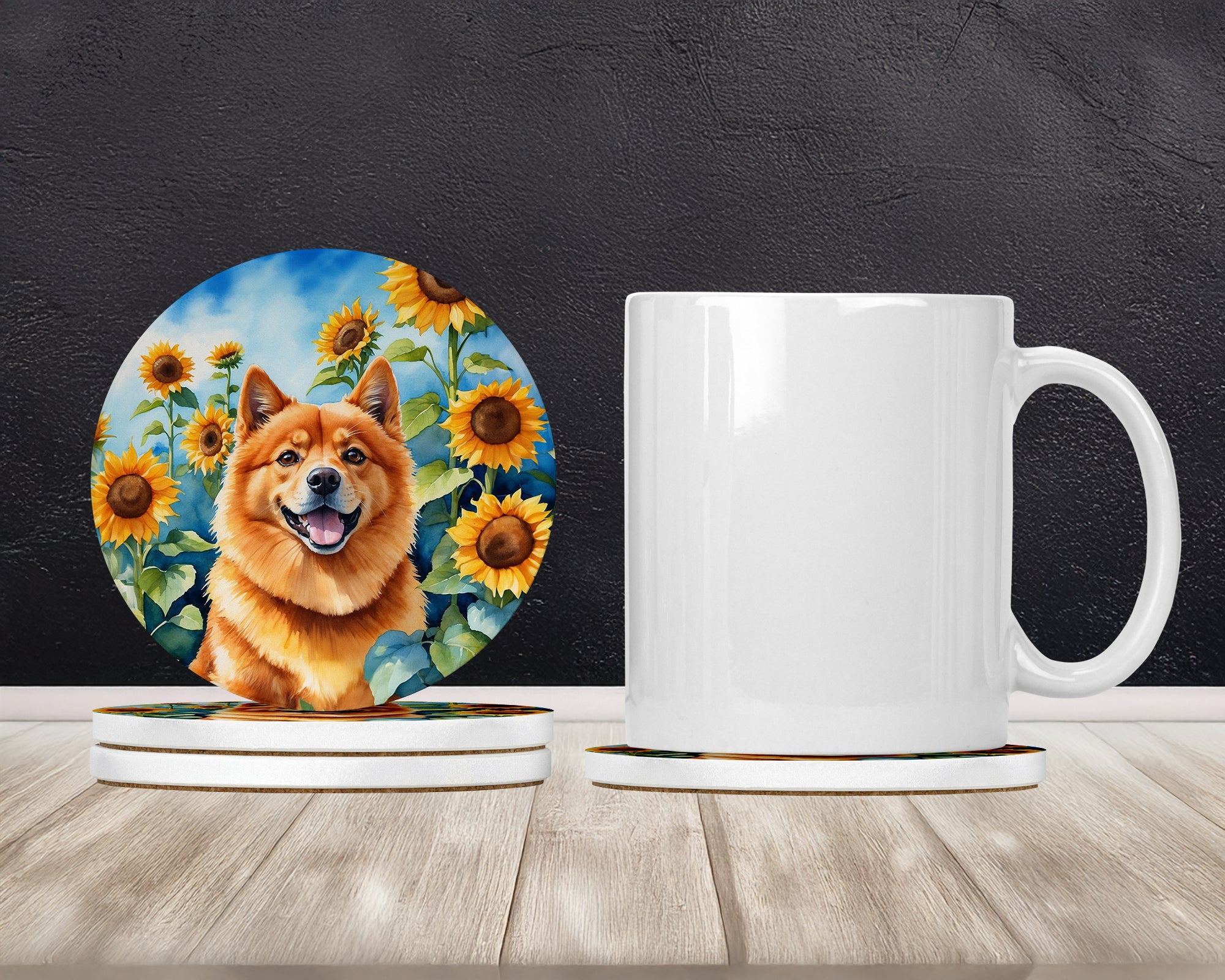 Finnish Spitz in Sunflowers Large Sandstone Coasters Pack of 4