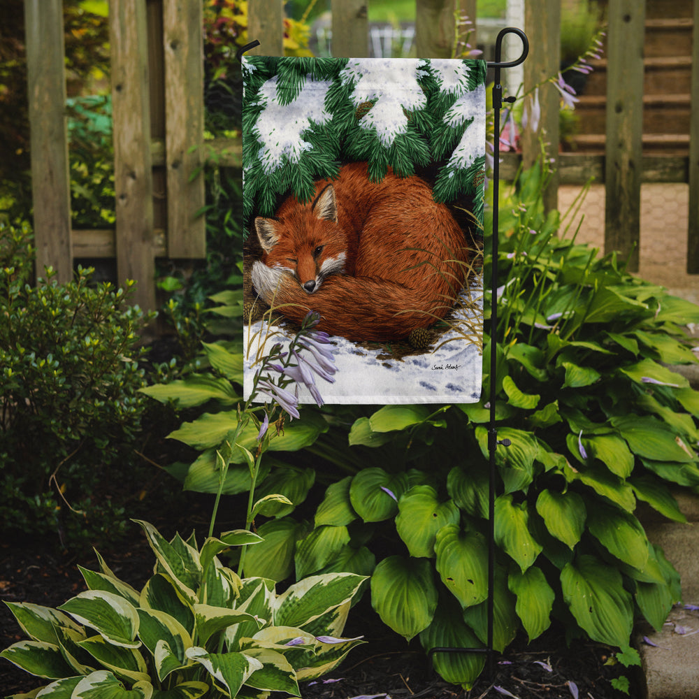 Decorate your space with our Fox artwork on a Garden Flag. Enhance the beauty of your garden, patio, or yard with Caroline's Treasures Decorative Garden Flag, proudly made in the USA. Crafted from two pieces of thick, double-sided polyester fabric, this 2-ply garden flag is designed to withstand various weather conditions, making it water-resistant and weatherproof. Featuring correctly readable words on both sides, this garden flag offers a delightful visual experience from any angle. With its heavier weight, it stands out among other garden flags, ensuring stability and durability even in wind, rain, and snow. Measuring approximately 11 1/4 inches by 15 1/2 inches, this flag allows you to personalize your outdoor decor. It comes with a 1 1/2-inch sleeve sewn in, allowing easy attachment to any standard garden flag stand or garden size porch hanger (sold separately). Make a statement in your outdoor space with Caroline's Treasures Decorative Garden Flag, a vibrant and high-quality flag that adds color and personality to your surroundings. Proudly made in the USA, it's a symbol of quality craftsmanship and attention to detail.