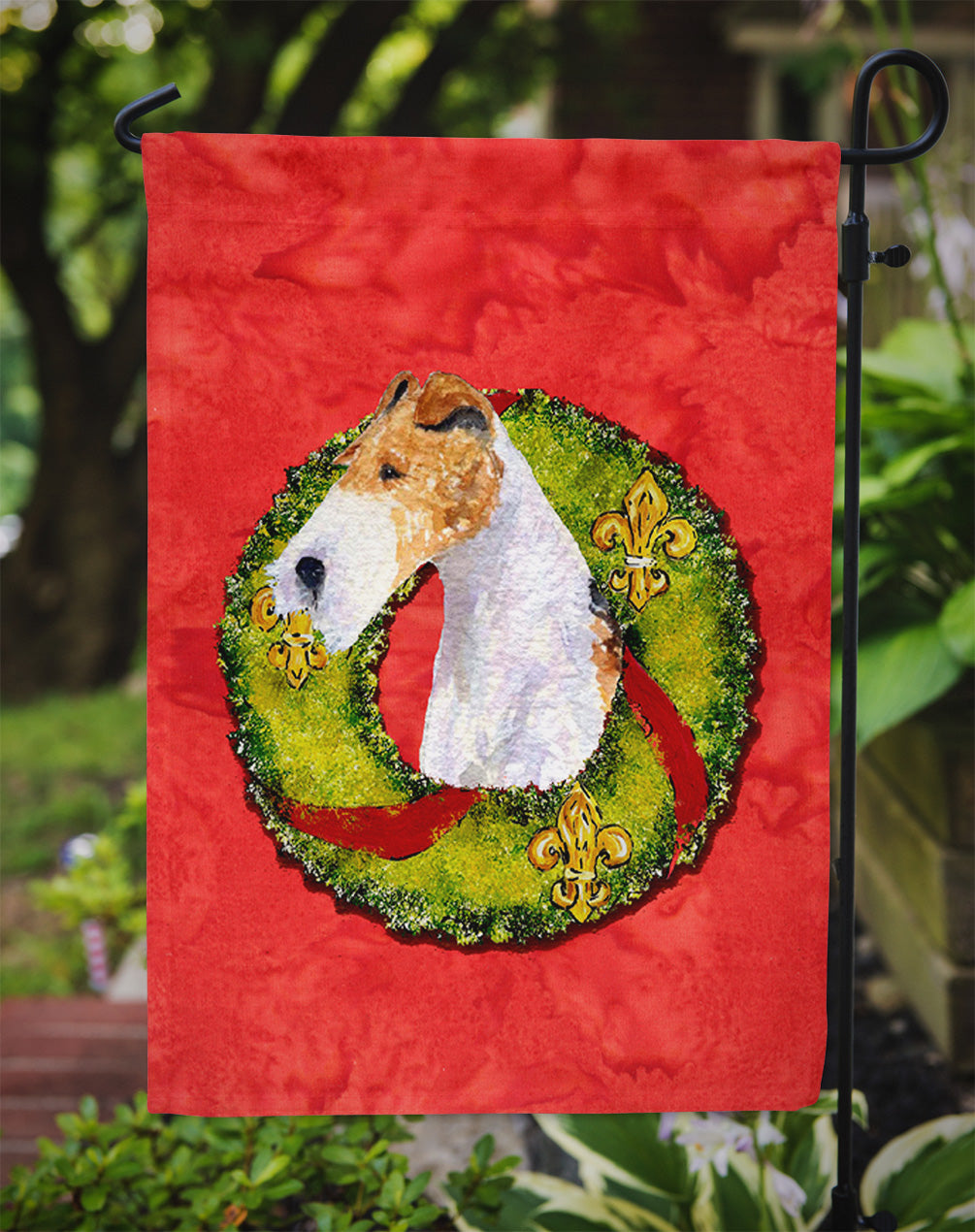 Decorate your space with our Fox Terrier artwork on a Garden Flag. Enhance the beauty of your garden, patio, or yard with Caroline's Treasures Decorative Garden Flag, proudly made in the USA. Crafted from two pieces of thick, double-sided polyester fabric, this 2-ply garden flag is designed to withstand various weather conditions, making it water-resistant and weatherproof. Featuring correctly readable words on both sides, this garden flag offers a delightful visual experience from any angle. With its heavier weight, it stands out among other garden flags, ensuring stability and durability even in wind, rain, and snow. Measuring approximately 11 1/4 inches by 15 1/2 inches, this flag allows you to personalize your outdoor decor. It comes with a 1 1/2-inch sleeve sewn in, allowing easy attachment to any standard garden flag stand or garden size porch hanger (sold separately). Make a statement in your outdoor space with Caroline's Treasures Decorative Garden Flag, a vibrant and high-quality flag that adds color and personality to your surroundings. Proudly made in the USA, it's a symbol of quality craftsmanship and attention to detail.