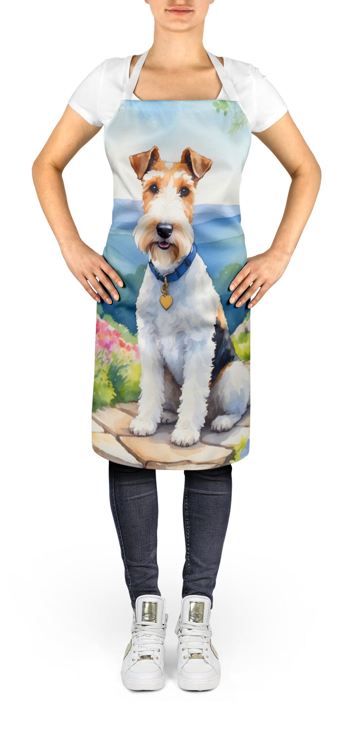 Decorate your space with our Fox Terrier artwork on a Apron. Bring a bit of Spring into your home with a Spring Apron. Elevate your cooking, baking, and grilling experiences with our versatile Kitchen or BBQ Apron. This Bib Style apron isn't just limited to culinary activities - it also serves as an excellent baking apron, artist apron, server apron, gardening apron, or even a dog grooming apron. The apron showcases vibrant full-color artwork contributed by one of our talented artists, bringing a dash of style to your daily tasks. With dimensions of approximately 27"W x 30"H, it provides ample coverage to protect your clothing from spills and splashes. Our apron is meticulously crafted from 100% Ultra Spun Polyester, known for its durability and lightweight nature. The apron comes with white tie straps, ensuring a comfortable and adjustable fit for all. It's a perfect choice for kitchen apron enthusiasts, whether you are a woman or a man. Designed for easy maintenance, this apron is fully machine washable. The quick-drying polyester material actively reduces staining, keeping your apron looking fresh and new for longer. Our beautifully designed apron isn't just a functional kitchen accessory - it's a fashion statement in the culinary world!