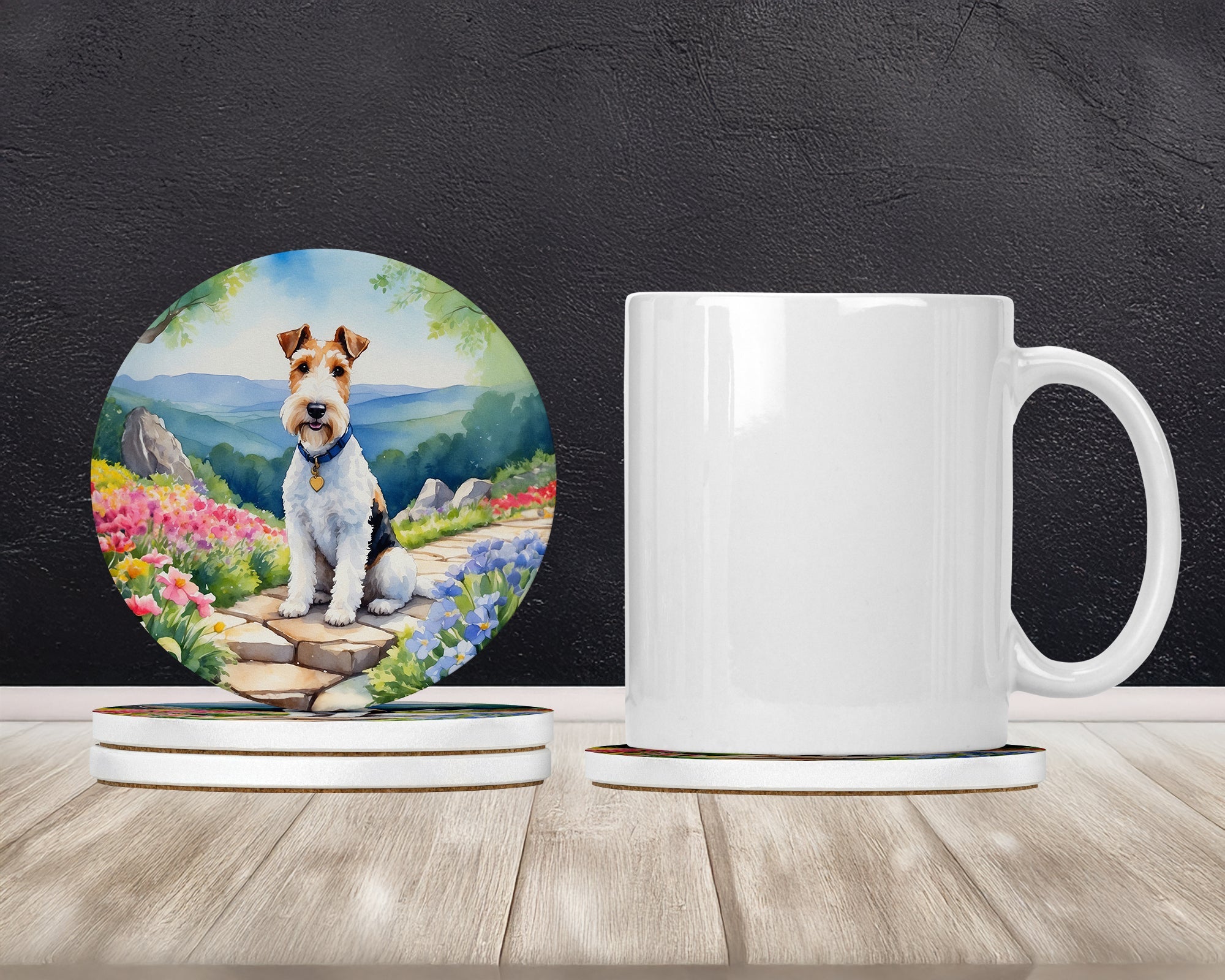 Large Sandstone Coasters Pack of 4 featuring breed specific Fox Terrier artwork. Introducing Caroline's Treasures Large Sandstone Coasters Pack of 4, the perfect addition to your home decor. Each coaster measures nearly 4 inches and is made from absorbent sandstone with a cork backing. Designed and printed in the United States, these coasters feature artwork from Caroline's Treasures' talented artists. Protect your countertops and tables from hot and cold drink condensation with these absorbent coasters. They efficiently absorb moisture, ensuring your surfaces stay dry and clean. Choose from a wide range of designs to update and enhance your decor or give them as a thoughtful gift for any occasion. Cleaning is a breeze—simply wipe the coaster with a damp towel to remove any spills or stains. Each set comes in a brown gift box, making it ready to be wrapped for that special person in your life. These absorbent sandstone coasters also make an excellent housewarming gift, providing both practicality and style. Celebrate birthdays, Mother's Day, Father's Day, Thanksgiving, Christmas, Teacher's Appreciation Day, or simply show someone you care with these versatile and charming coasters. Caroline's Treasures Large Sandstone Coasters Pack of 4 is the perfect happy gift for any occasion.