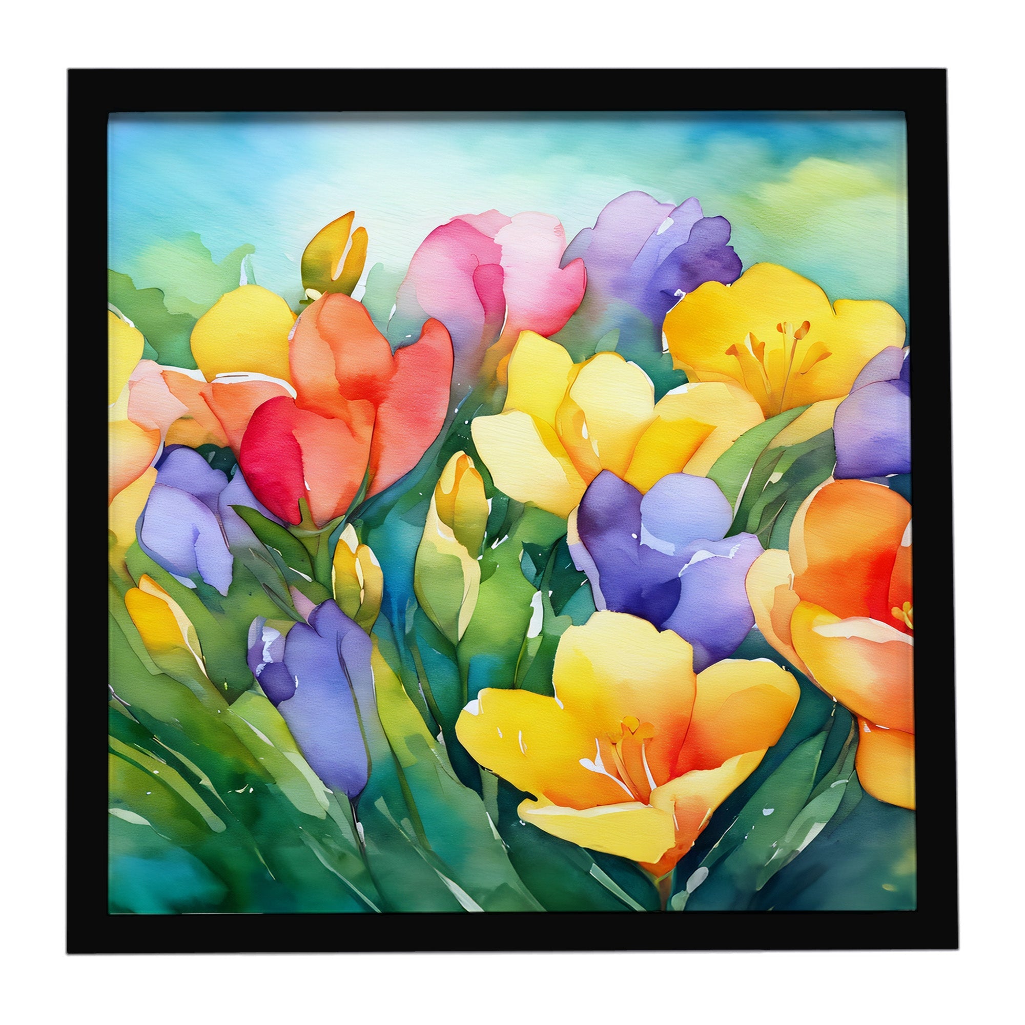Framed Metal Print featuring breed specific Freesias artwork. Looking for wall art that’s stylish, safe, and made to last? Our 8x8 Framed Metal Prints are designed with modern living in mind. Each piece features original artwork printed on durable aluminum, set in a sleek frame that measures 3/4 inch deep for a clean, contemporary finish. Unlike glass prints, these are lightweight, shatter-free, and family-safe. Perfect for kitchens, bathrooms, or covered porches where traditional décor might not hold up. The built-in sawtooth hanger molded into the back makes it easy to hang right out of the box—just use your own nails or screws. Cleaning is simple too: a quick wipe with a damp cloth and mild soap keeps your artwork looking vibrant. Proudly made in Alabama, every print supports our community of artists while adding personality and charm to your home.