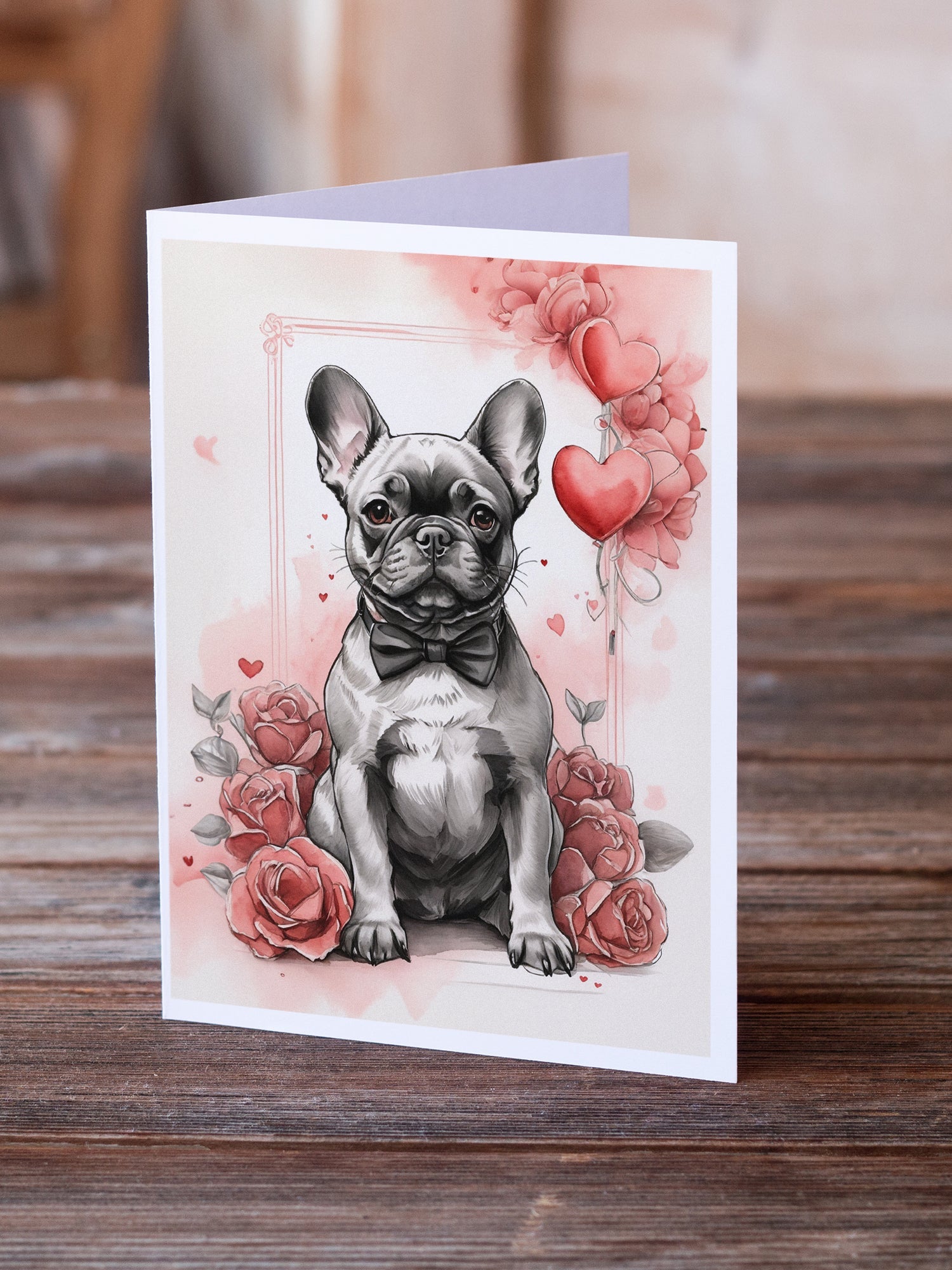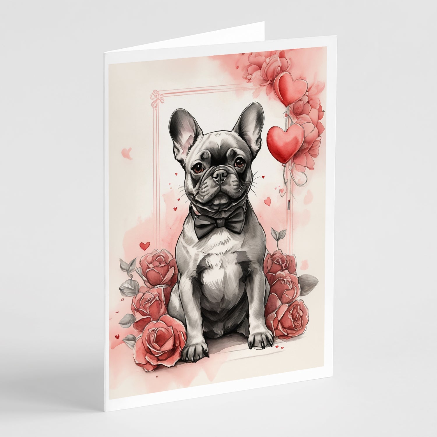 Decorate your space with our Valentine's Day French Bulldog artwork on a . Celebrate special moments with Caroline's Treasures Printed Greeting Card Pack. This pack includes eight beautifully folded 5x7 cards, accompanied by eight matching white envelopes. With blank interiors, these cards provide ample space for your personalized messages and heartfelt holiday greetings. Each card features captivating full-color artwork, meticulously printed in our facility on high-quality 80 lb cover stock or 216 GSM. The super smooth finish of the white cards enhances the visual impact of the artwork, creating a truly stunning presentation. Designed by our talented in-house artists or licensed artists, the artwork on these cards showcases their creativity and attention to detail. From vibrant illustrations to captivating designs, each card tells its own unique story. Whether it's for birthdays, anniversaries, holidays, or any special occasion, Caroline's Treasures Greeting Card Pack is the perfect way to convey your heartfelt sentiments. Share joy, love, and warm wishes with these exquisite cards and make every moment unforgettable.