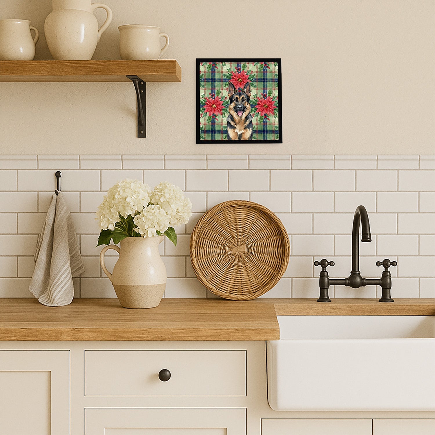 Framed Metal Print featuring breed specific German Shepherd artwork. Celebrate Christmas with this Christmas Framed Metal Print. Looking for wall art that�s stylish, safe, and made to last? Our 8x8 Framed Metal Prints are designed with modern living in mind. Each piece features original artwork printed on durable aluminum, set in a sleek frame that measures 3/4 inch deep for a clean, contemporary finish. Unlike glass prints, these are lightweight, shatter-free, and family-safe. Perfect for kitchens, bathrooms, or covered porches where traditional d�cor might not hold up. The built-in sawtooth hanger molded into the back makes it easy to hang right out of the box�just use your own nails or screws. Cleaning is simple too: a quick wipe with a damp cloth and mild soap keeps your artwork looking vibrant. Proudly made in Alabama, every print supports our community of artists while adding personality and charm to your home.