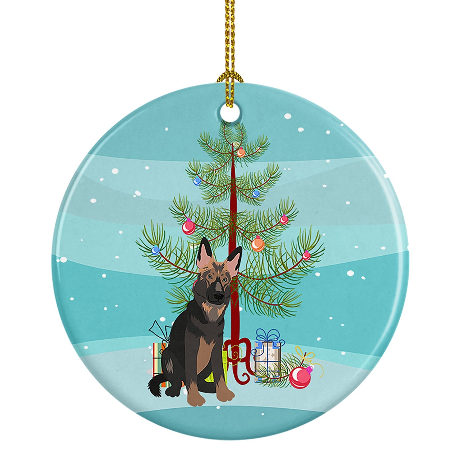 Ceramic Ornament featuring breed specific German Shepherd artwork. Celebrate Christmas with this Christmas Ornament. Add a touch of personalized charm to your Christmas tree this holiday season with our Ceramic Ornament. Measuring 2.8125 inches in diameter, this round porcelain ornament beautifully reflects your festive lights, enhancing your holiday decor. The gloss surface sets off the vibrant, full-color artwork contributed by one of our talented artists, bringing a pop of color and joy to your tree. This Ceramic Ornament doesn't stop at being merely decorative. The white back is designed for personalization. Write a heartfelt message, mark a special year, or inscribe a date with a paint pen or a permanent marker to create a treasured memento. Please ensure you allow any personalization to dry thoroughly before handling to maintain the pristine finish. Included with the ornament is a delicate gold cord for easy hanging. Made in the USA, this Ceramic Ornament makes an exceptional gift for a pet sitter, teacher, family member, or anyone you wish to share a little Christmas magic with. With its blend of style, charm, and personal touch, it's a meaningful addition to any Christmas tree.