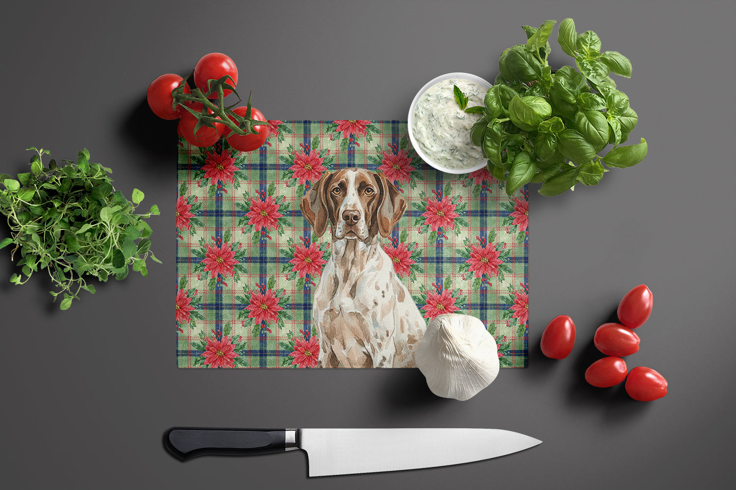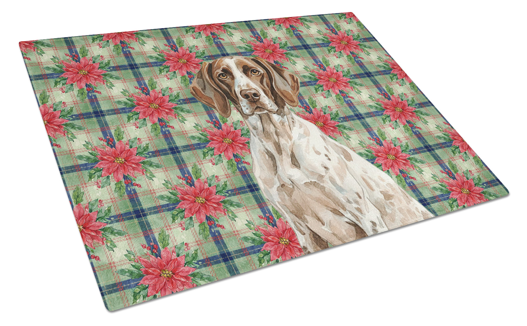 Glass Cutting Board featuring breed specific German Shorthaired Pointer artwork. Celebrate Christmas with this Christmas Cutting Board. Introduce your kitchen to the vibrant, large Decorative Glass Cutting Board from Caroline's Treasures. Crafted from resilient tempered glass, this board is not only a utilitarian necessity but also a colorful art piece. With its generous dimensions of 15 inches in height and 11 inches in length, it offers ample space for all your cutting needs. Every piece showcases captivating artwork from distinguished artists, bringing an aesthetic edge to your kitchen. Beyond its attractive design, this cutting board ensures your countertop stays pristine and unscathed, owing to its heat-resistant properties. Engineered with user convenience in mind, it features non-skid feet for stability, and rounded corners for additional safety. Its robust construction renders it virtually unbreakable, guaranteeing longevity. The board comes with protective feet bumpers, maintaining its position during use. This product is recommended to be hand washed only. Proudly printed and assembled in the United States, this cutting board exemplifies superior craftsmanship. With Caroline's Treasures' Decorative Glass Cutting Board, you're investing in a blend of functionality and artistic flair.