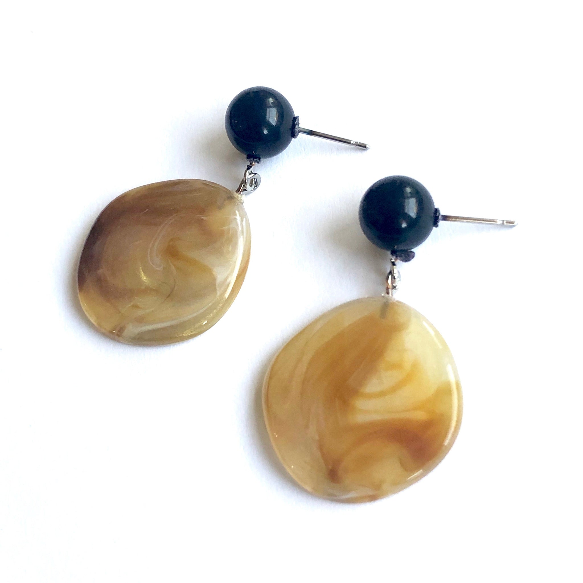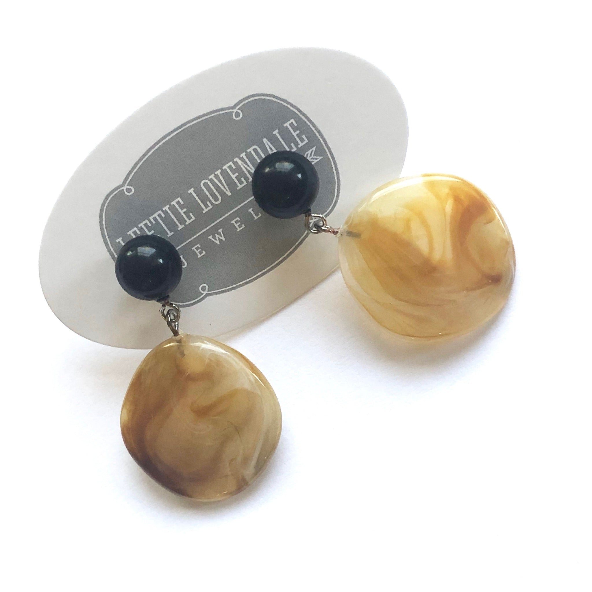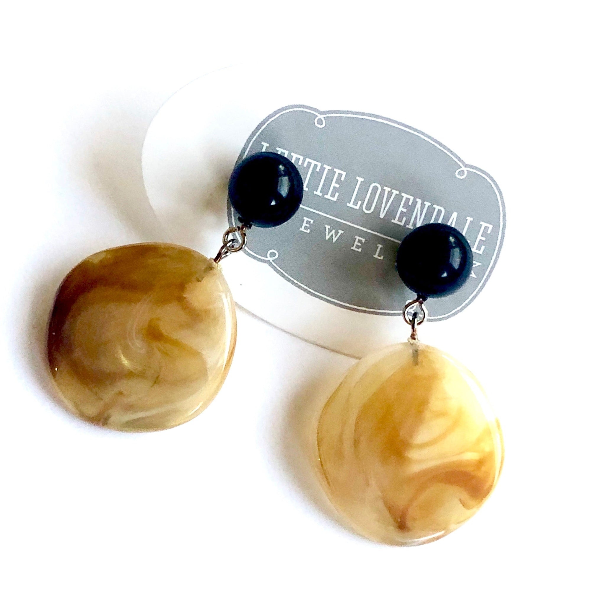 Gold & Black Marbled Lucite Geo Drop Sarah Earrings