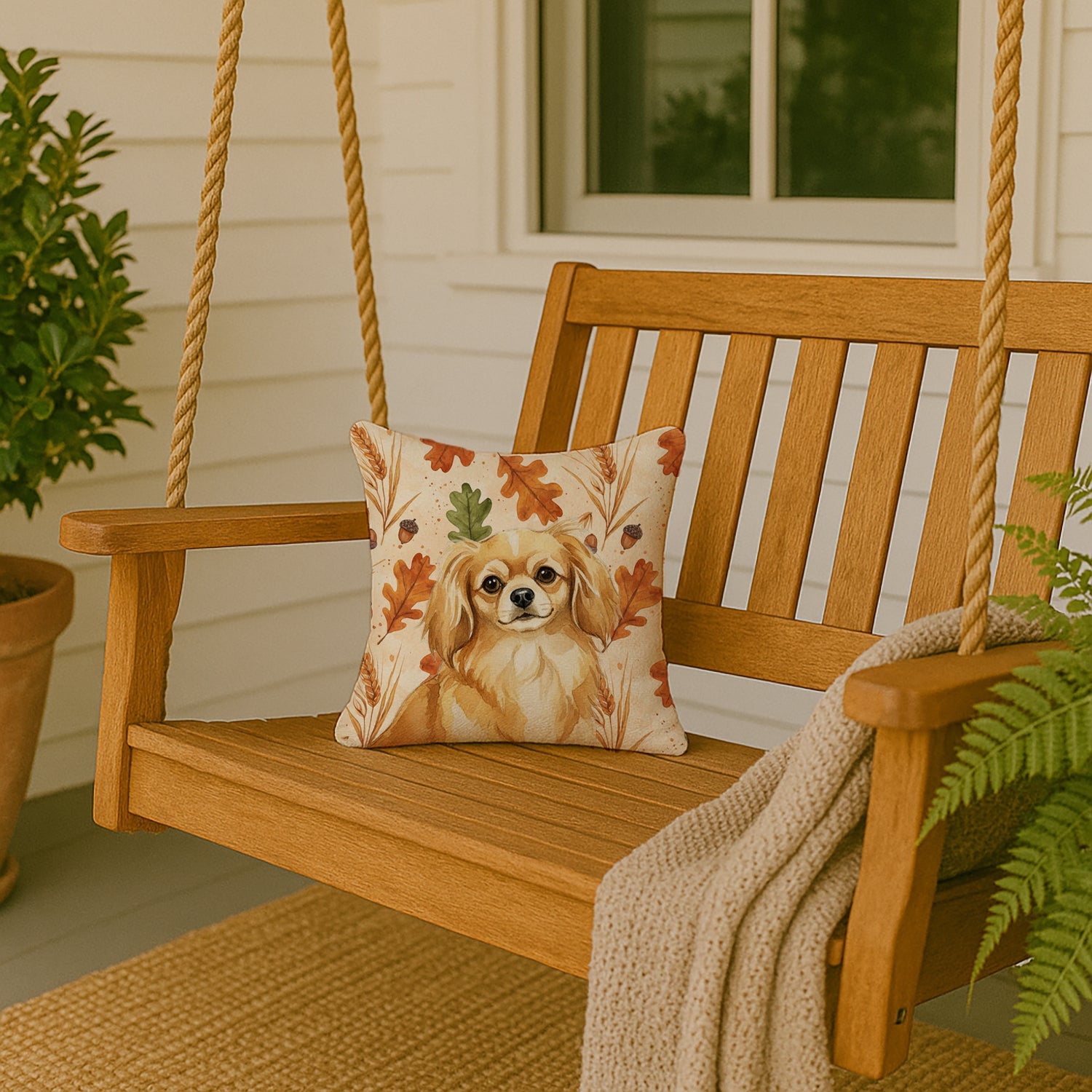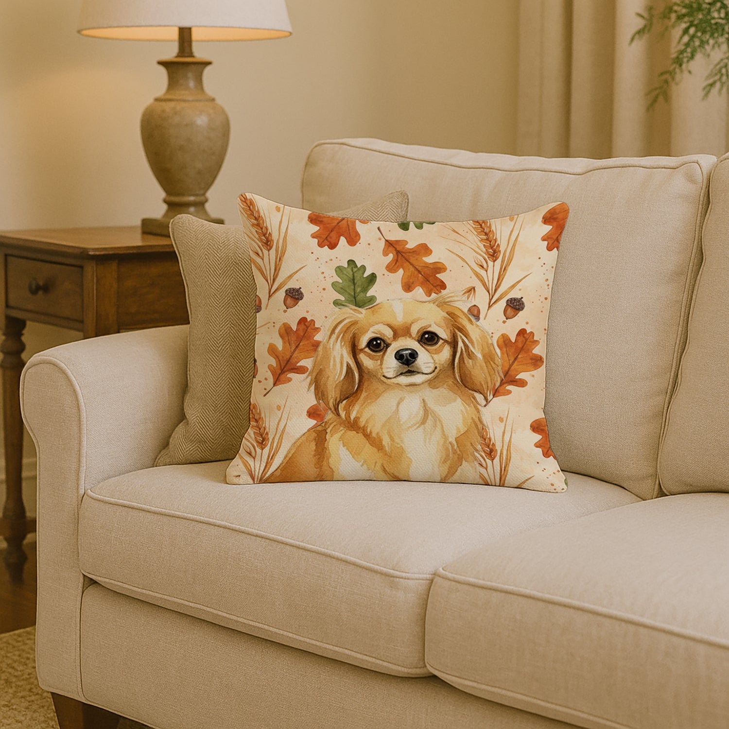 Throw Pillow featuring breed specific Tibetan Spaniel artwork. Celebrate Thanksgiving with this Thanksgiving Pillow. Add a touch of vibrancy and comfort to your outdoor seating with Caroline's Treasures Fabric Decorative Pillow. Measuring approximately 14 inches by 14 inches, this outdoor pillow is crafted to elevate the appeal of your patio furniture, infusing it with vivid color and artistic flair. The pillow includes a 100% Polyester Fabric sham filled with a quality pillow form to provide superior comfort. Innovatively made from our brand new material, specifically woven for its water resistance, this pillow is designed for durability. The soft canvas fabric offers versatility in use, fit for your indoor couch or your outdoor patio, porch, or veranda. The fabric is dyed with colorfast dyes built for resilience against weather conditions, ensuring the pillow retains its beauty over time. Constructed by sewing three fabric pieces to create a sham, the polyester insert is then nestled inside to form the pillow, resulting in an overstuffed pillow that maintains its shape. Both the sham and the pillow insert are proudly made in the United States. As the pillows are handcrafted, there may be minor variations in size, further enhancing their unique charm. Experience comfort in style with Caroline's Treasures Fabric Decorative Pillow.