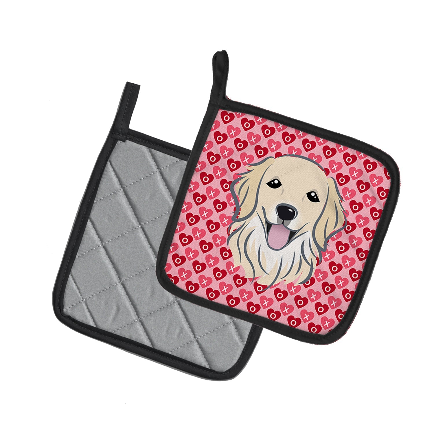 Decorate your space with our Golden Retriever artwork on a Pair of Pot Holders. A Pair of Pot Holders to match your kitchen decor. Made in the USA these are thick and functional. Full color artwork decorates the front polyester fabric of the hot pad and accented by a black trim. Use these at as a trivet for your Thanksgiving or Christmas tablescape. Filled with insulated fabric and quilted for durability. These colorful pot holders will make a great gift for your favorite home cook or executive chef. Each pot holder measures approximately 7 1/2 inches by 7 1/2 inches. A hanging tab is included.