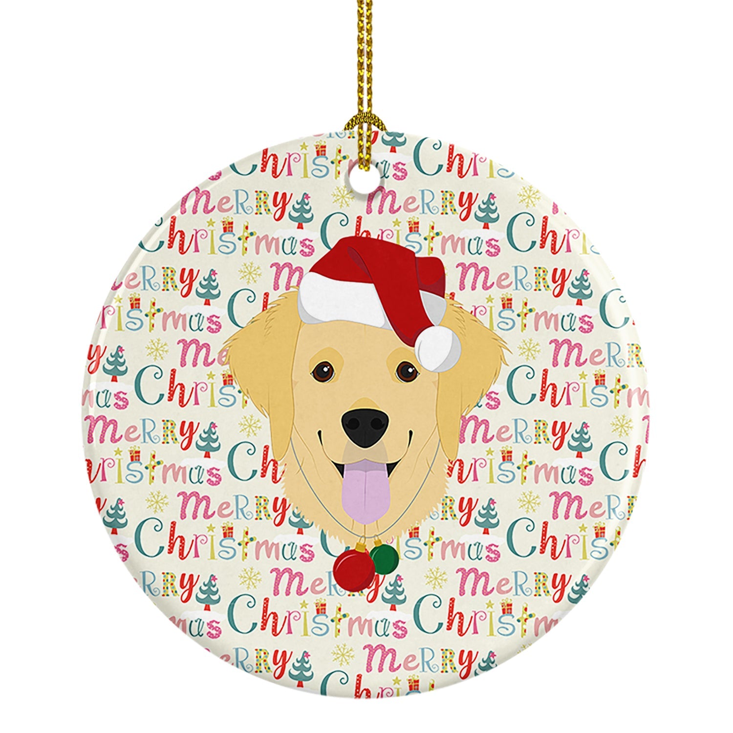 Decorate your space with our Christmas Golden Retriever artwork on a Ornament. Add a touch of personalized charm to your Christmas tree this holiday season with our Ceramic Ornament. Measuring 2.8125 inches in diameter, this round porcelain ornament beautifully reflects your festive lights, enhancing your holiday decor. The gloss surface sets off the vibrant, full-color artwork contributed by one of our talented artists, bringing a pop of color and joy to your tree. This Ceramic Ornament doesn't stop at being merely decorative. The white back is designed for personalization. Write a heartfelt message, mark a special year, or inscribe a date with a paint pen or a permanent marker to create a treasured memento. Please ensure you allow any personalization to dry thoroughly before handling to maintain the pristine finish. Included with the ornament is a delicate gold cord for easy hanging. Made in the USA, this Ceramic Ornament makes an exceptional gift for a pet sitter, teacher, family member, or anyone you wish to share a little Christmas magic with. With its blend of style, charm, and personal touch, it's a meaningful addition to any Christmas tree.