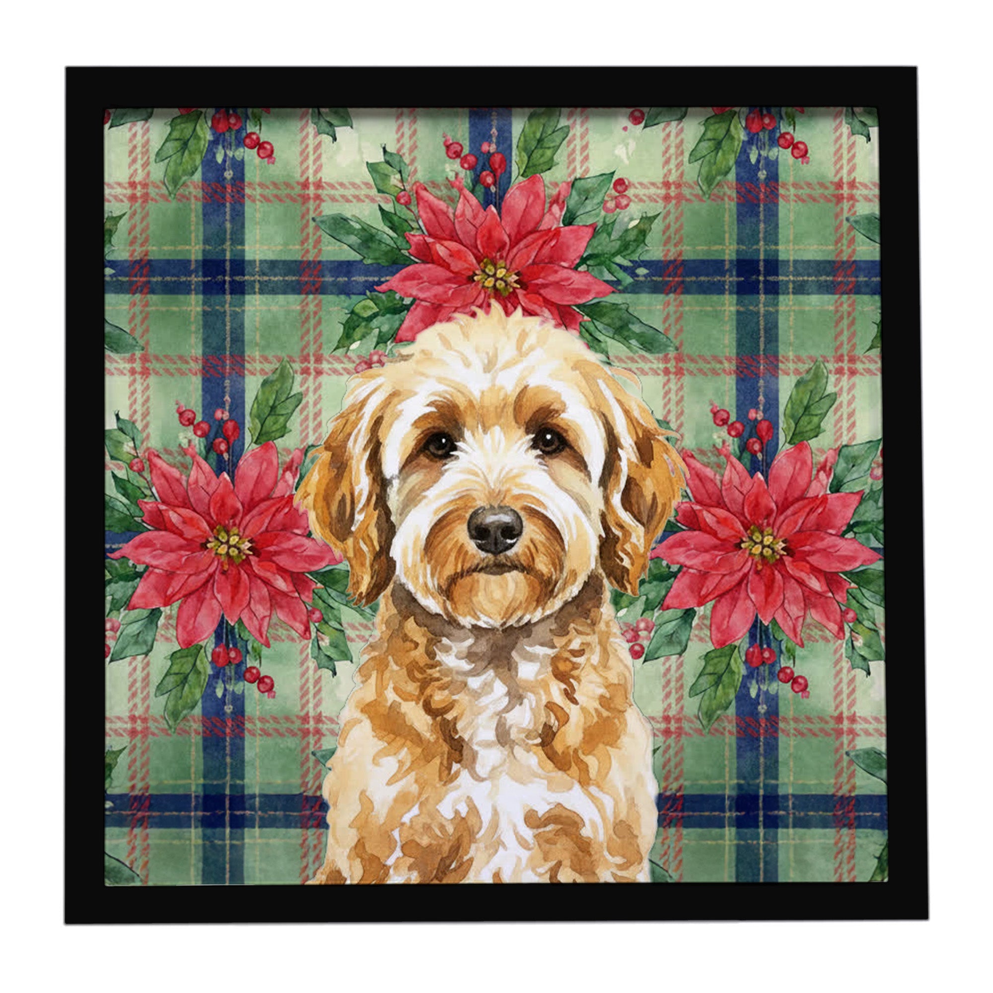Framed Metal Print featuring breed specific Goldendoodle artwork. Celebrate Christmas with this Christmas Framed Metal Print. Looking for wall art that�s stylish, safe, and made to last? Our 8x8 Framed Metal Prints are designed with modern living in mind. Each piece features original artwork printed on durable aluminum, set in a sleek frame that measures 3/4 inch deep for a clean, contemporary finish. Unlike glass prints, these are lightweight, shatter-free, and family-safe. Perfect for kitchens, bathrooms, or covered porches where traditional d�cor might not hold up. The built-in sawtooth hanger molded into the back makes it easy to hang right out of the box�just use your own nails or screws. Cleaning is simple too: a quick wipe with a damp cloth and mild soap keeps your artwork looking vibrant. Proudly made in Alabama, every print supports our community of artists while adding personality and charm to your home.