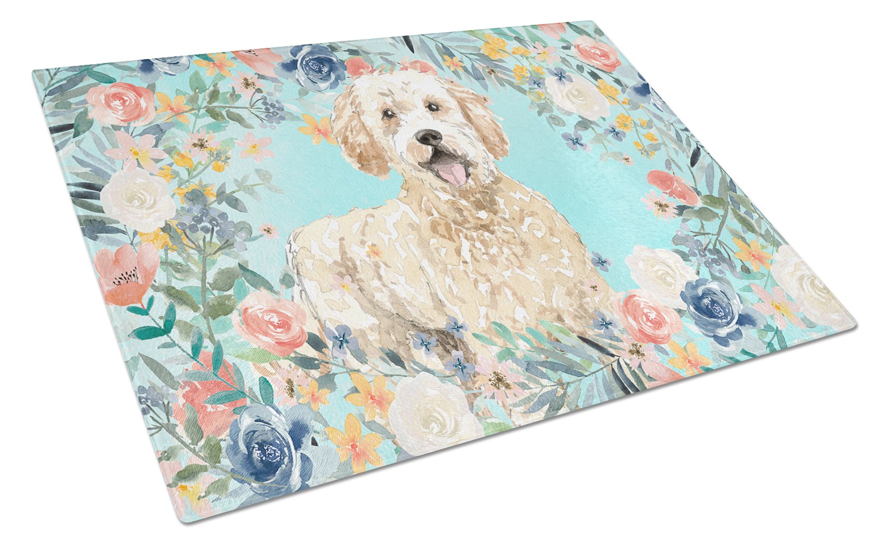 Decorate your space with our Goldendoodle artwork on a Cutting Board. Introduce your kitchen to the vibrant, large Decorative Glass Cutting Board from Caroline's Treasures. Crafted from resilient tempered glass, this board is not only a utilitarian necessity but also a colorful art piece. With its generous dimensions of 15 inches in height and 12 inches in length, it offers ample space for all your cutting needs. Every piece showcases captivating artwork from distinguished artists, bringing an aesthetic edge to your kitchen. Beyond its attractive design, this cutting board ensures your countertop stays pristine and unscathed, owing to its heat-resistant properties. Engineered with user convenience in mind, it features non-skid feet for stability, and rounded corners for additional safety. Its robust construction renders it virtually unbreakable, guaranteeing longevity. The board comes with protective feet bumpers, maintaining its position during use. This product is recommended to be hand washed only. Proudly printed and assembled in the United States, this cutting board exemplifies superior craftsmanship. With Caroline's Treasures' Decorative Glass Cutting Board, you're investing in a blend of functionality and artistic flair.
