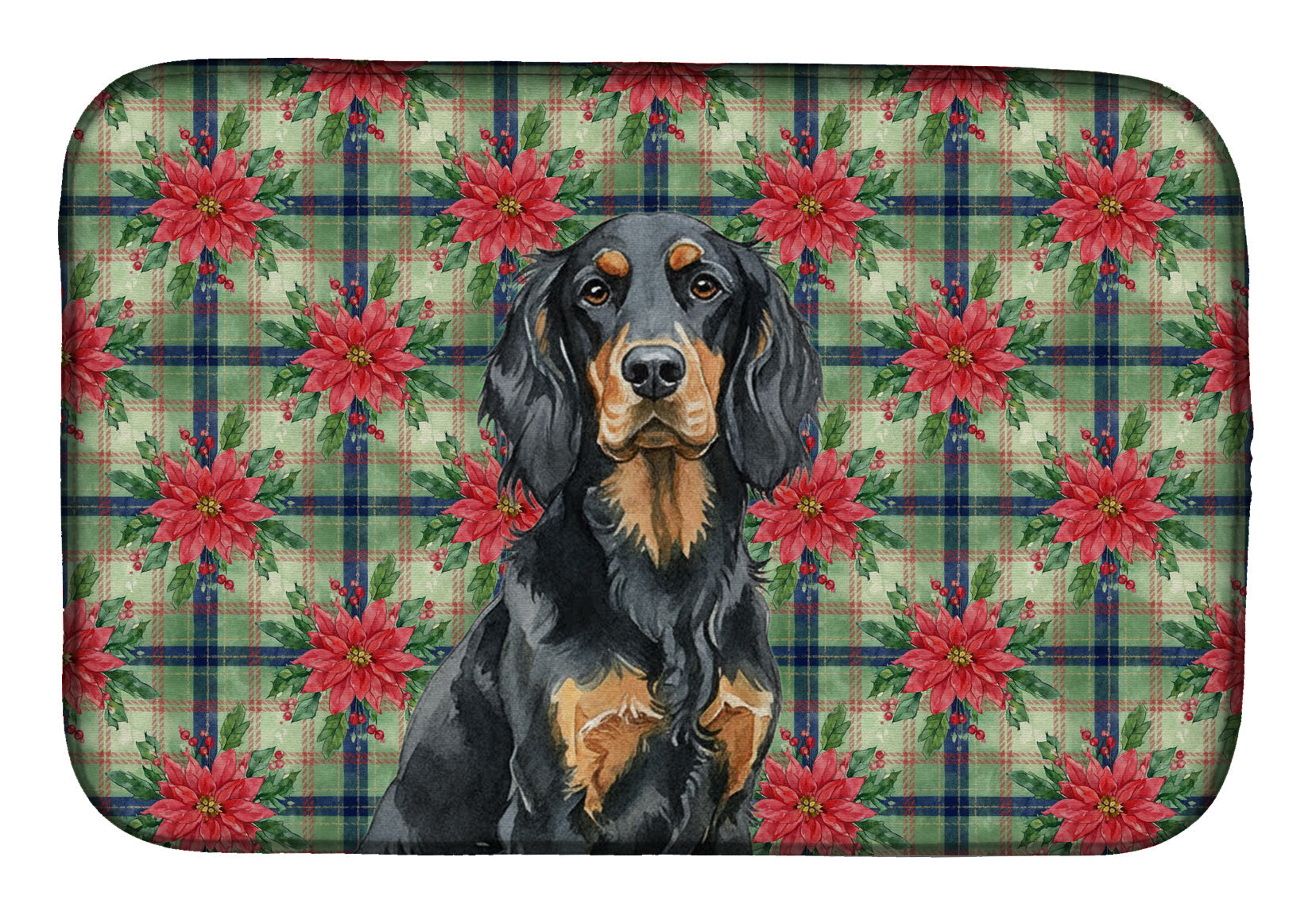Dish Drying Mat featuring breed specific Gordon Setter artwork. Celebrate Christmas with this Christmas Dish Drying Mat. Say goodbye to messy countertops and soggy dish towels with our innovative dish drying mat. Our high-quality dish drying pad is designed to keep your countertops dry while offering a stylish and efficient solution. Whether you're air drying dishes, glasses, stemware, silverware, pots, pans, bottles, or even fruits and vegetables, our dish mat is the perfect choice. The 14 inches x 22 inches size fits most counters and dish drying racks, and the non-slip design ensures stability. Made with water-absorbent polyester and a polyurethane foam insert, our dish drying mat is not only functional but also durable. It's machine washable and printed in the USA for long-lasting use. The beautiful artwork adds flair to your kitchen decor, making it a perfect housewarming gift or present for any occasion. Upgrade your kitchen experience with our absorbent and versatile dish drying mat.
