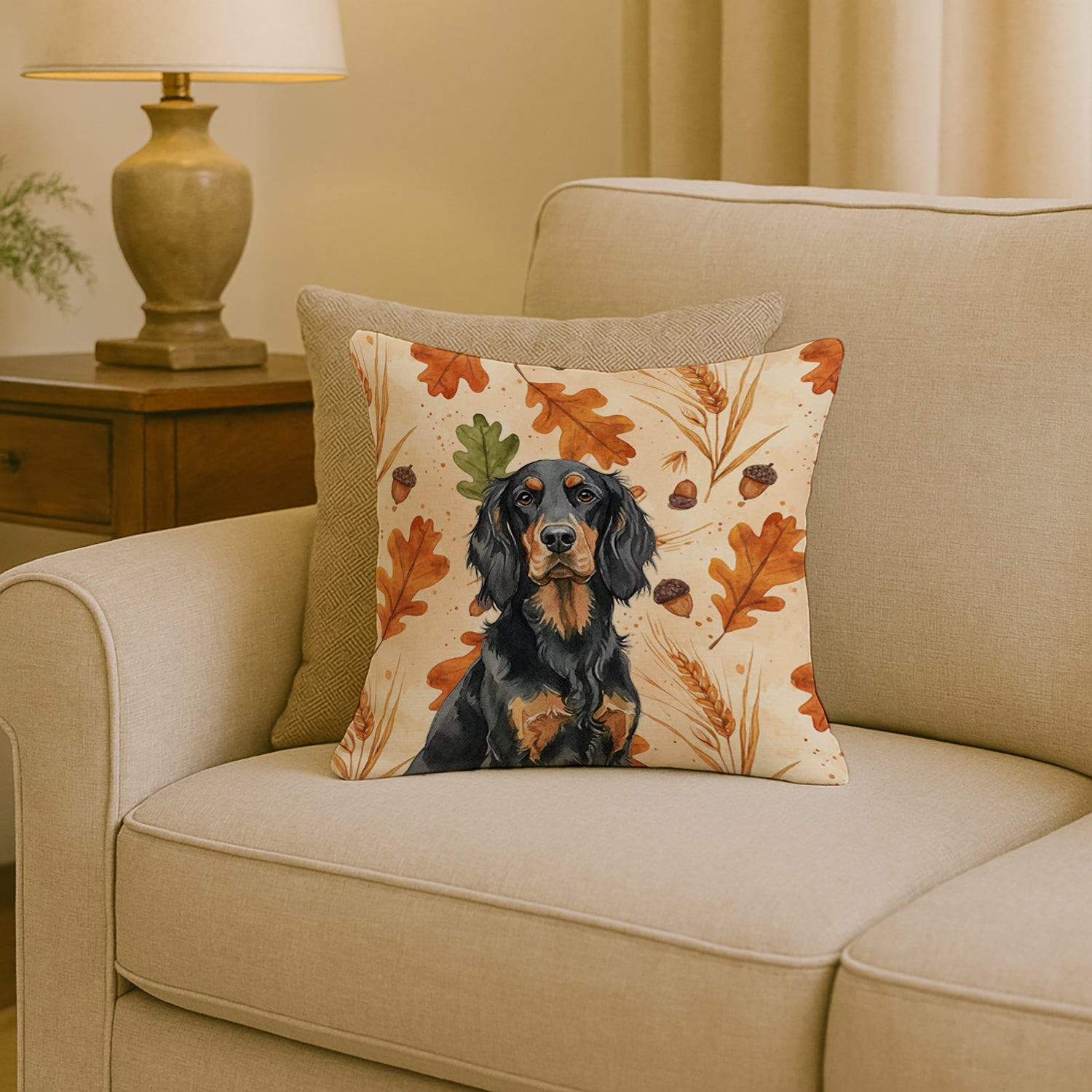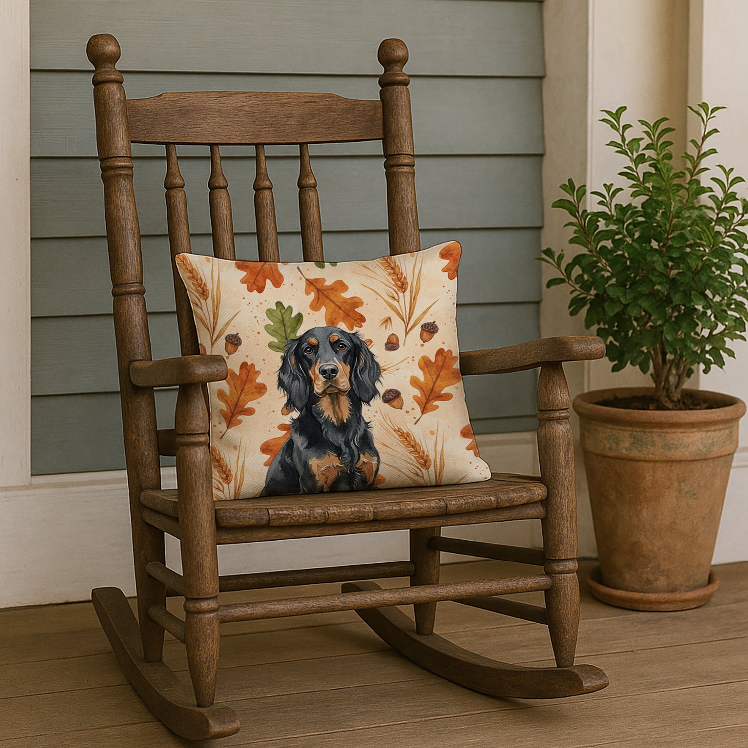 Throw Pillow featuring breed specific Gordon Setter artwork. Celebrate Thanksgiving with this Thanksgiving Pillow. Revitalize your outdoor or indoor living space with Caroline's Treasures 18x18 Fabric Decorative Pillow. With a generously sized dimension of approximately 18 inches by 18 inches, this pillow makes a comfortable and aesthetic addition to any seating area. Made from a unique, water-resistant material developed by Caroline's Treasures, the pillow sham is 100% polyester fabric that's durable and ready to weather any condition. Its vibrant, full-color artwork will not fade over time as it is dyed with color-fast dyes. Whether you place it on your patio furniture, porch, veranda, or indoor couch, its soft canvas fabric ensures a cozy experience. The pillow is handcrafted in the United States, featuring a sham created from three pieces of fabric and a polyester insert for enduring shape and overstuffed comfort. Despite being robustly built to endure the outdoors, it is as soft and snug as your favorite indoor cushions. Please note, as all our pillows are handmade, sizes may vary slightly, adding to the charm of this unique decorative item.