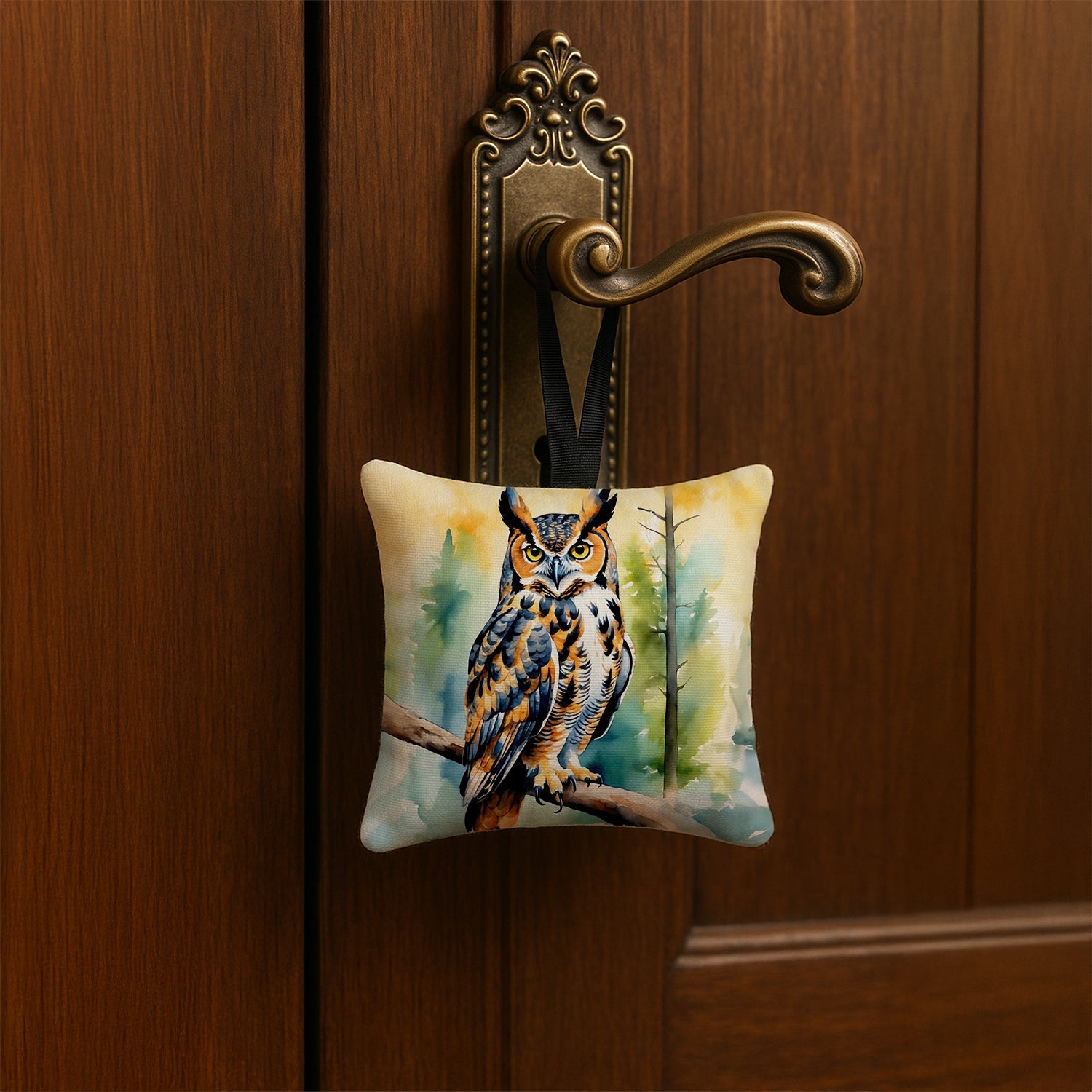 Hanging Square Fabric Ornament 3.5 × 3.5 featuring breed specific Great Horned Owl artwork. Caroline’s Treasures Mini Hanging Square Fabric Ornament approximately 3.5 inches by 3.5 inches. Add a pop of personality to any space with our collectible fabric ornament, proudly Made in the USA. Perfect for doorknobs, cabinet pulls, kitchen hooks, Easter trees, Christmas trees, rear-view mirrors and more, this petite pillow like ornament transforms even the smallest corner into a statement of style. USA Craftsmanship: Sewn, stuffed and printed in Alabama for quality you can feel while supporting American jobs. Collect them all - mix and match Christmas, Patriotic Stars and Stripes, Easter Pastels, Valentine Hearts, Thanksgiving Harvest and more to celebrate every season in signature Caroline’s Treasures style.