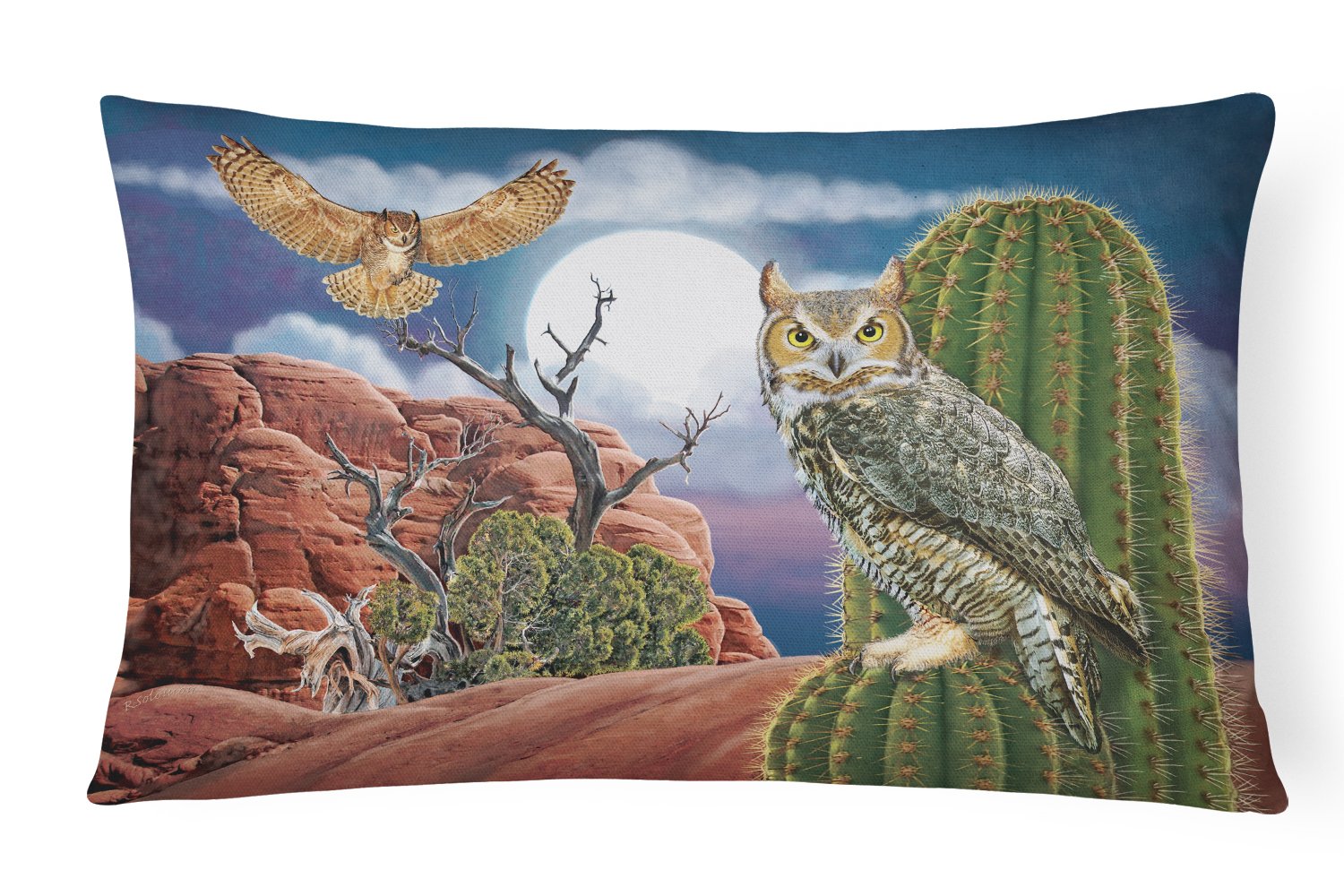 Great Horned Owl In The Desert Canvas Fabric Decorative Pillow PRS4052PW1216