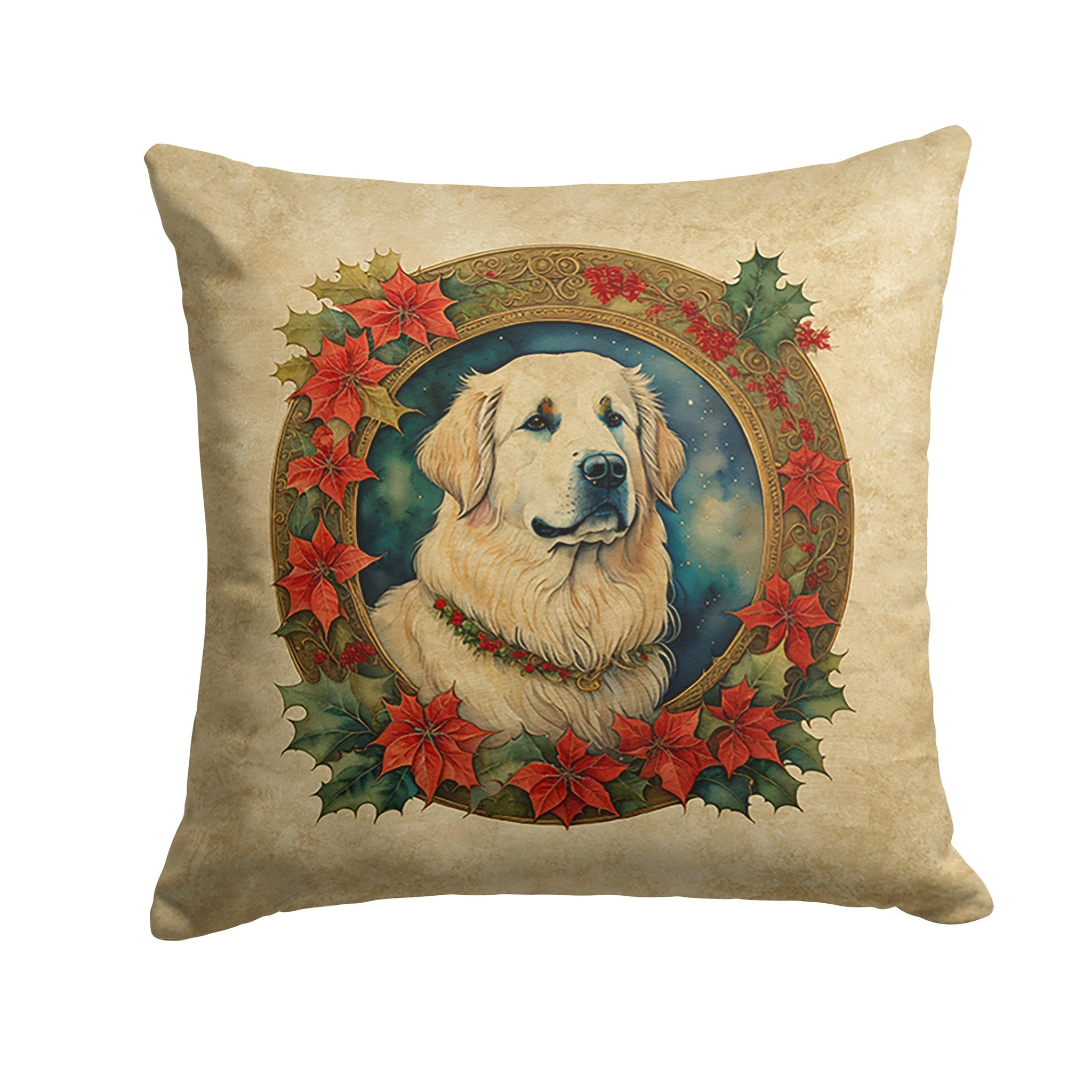 Decorate your space with our Christmas Great Pyrenees artwork on a Pillow. Bring a bit of Winter into your home with a Winter Pillow. Revitalize your outdoor or indoor living space with Caroline's Treasures 18x18 Fabric Decorative Pillow. With a generously sized dimension of approximately 18 inches by 18 inches, this pillow makes a comfortable and aesthetic addition to any seating area. Made from a unique, water-resistant material developed by Caroline's Treasures, the pillow sham is 100% polyester fabric that's durable and ready to weather any condition. Its vibrant, full-color artwork will not fade over time as it is dyed with color-fast dyes. Whether you place it on your patio furniture, porch, veranda, or indoor couch, its soft canvas fabric ensures a cozy experience. The pillow is handcrafted in the United States, featuring a sham created from three pieces of fabric and a polyester insert for enduring shape and overstuffed comfort. Despite being robustly built to endure the outdoors, it is as soft and snug as your favorite indoor cushions. Please note, as all our pillows are handmade, sizes may vary slightly, adding to the charm of this unique decorative item.