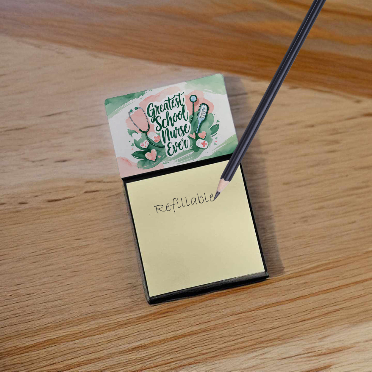 Celebrate the educators who inspire every day with this funny teacher sticky note holder from Caroline’s Treasures. Proudly made in the USA, each design features the phrase Greatest School Nurse Ever - in bold, colorful artwork that turns an everyday desk accessory into a thoughtful gift. The sturdy base holds 3" x 3" sticky notes securely while you write, and the glossy aluminum art plate adds a durable, fade-resistant finish that lasts. Refilling is easy—just roll a piece of tape around your finger, press it to the back sheet of a new pad, and attach it to the board. Ideal for classrooms, offices, or home desks, these note holders make a meaningful gift for Teacher Appreciation Week, back-to-school, end-of-year celebrations, or simply saying thank you.