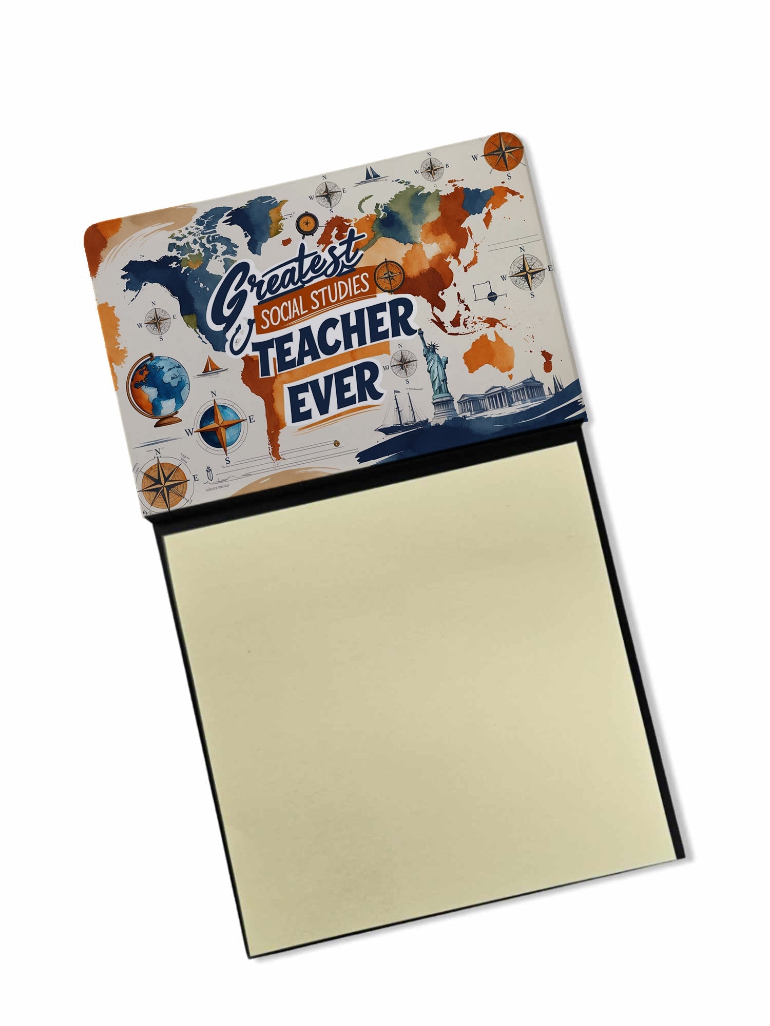 Celebrate the educators who inspire every day with this funny teacher sticky note holder from Caroline’s Treasures. Proudly made in the USA, each design features the phrase Greatest Social Studies Teacher Ever - in bold, colorful artwork that turns an everyday desk accessory into a thoughtful gift. The sturdy base holds 3" x 3" sticky notes securely while you write, and the glossy aluminum art plate adds a durable, fade-resistant finish that lasts. Refilling is easy—just roll a piece of tape around your finger, press it to the back sheet of a new pad, and attach it to the board. Ideal for classrooms, offices, or home desks, these note holders make a meaningful gift for Teacher Appreciation Week, back-to-school, end-of-year celebrations, or simply saying thank you.