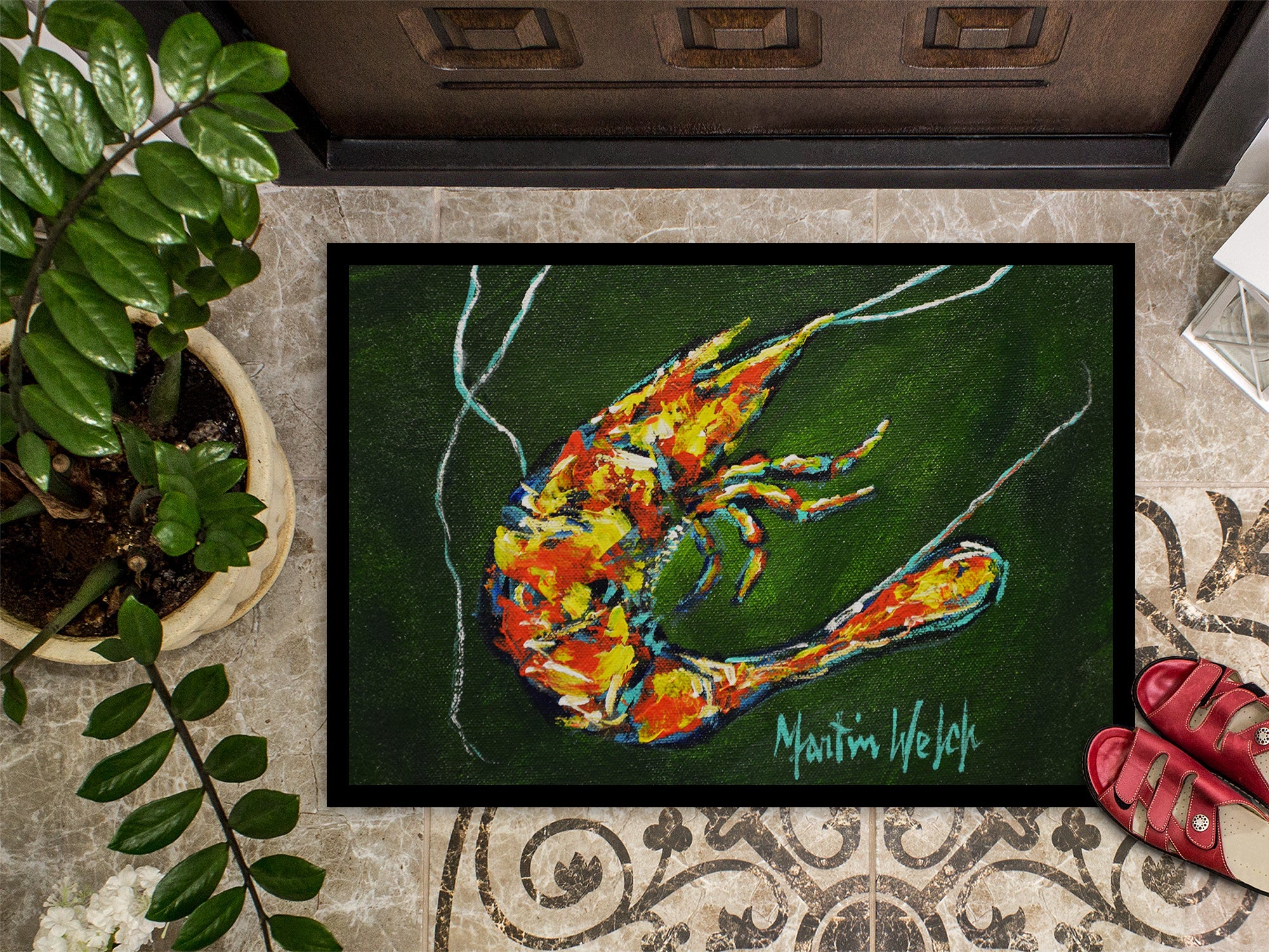 Welcome your guests in style with our Artwork Door Mat, designed to withstand almost any weather condition. This mat, measuring approximately 18 by 27 inches, is held together by durable black binding tape. Its top layer, composed of polyester felt, is dyed with the eye-catching image you see on the mat. A few layers below provide the mat with stability, while its rubber bottom is stamped to help prevent slipping and ensures safety. Our mat works wonderfully as both an indoor or outdoor door mat. For cleaning, simply hose it off with water or use a power washer - no need for any cleaner that produces suds. Avoid scrubbing with a brush, instead, opt for the vacuum on floor setting. Designed manufactured and printed in the USA, this mat is a perfect addition to your porch, outdoor kitchen, entryway, or any indoor space. Its unique design makes it a charming decorative rug that greets your guests and adds a stylish touch to your home decor.
