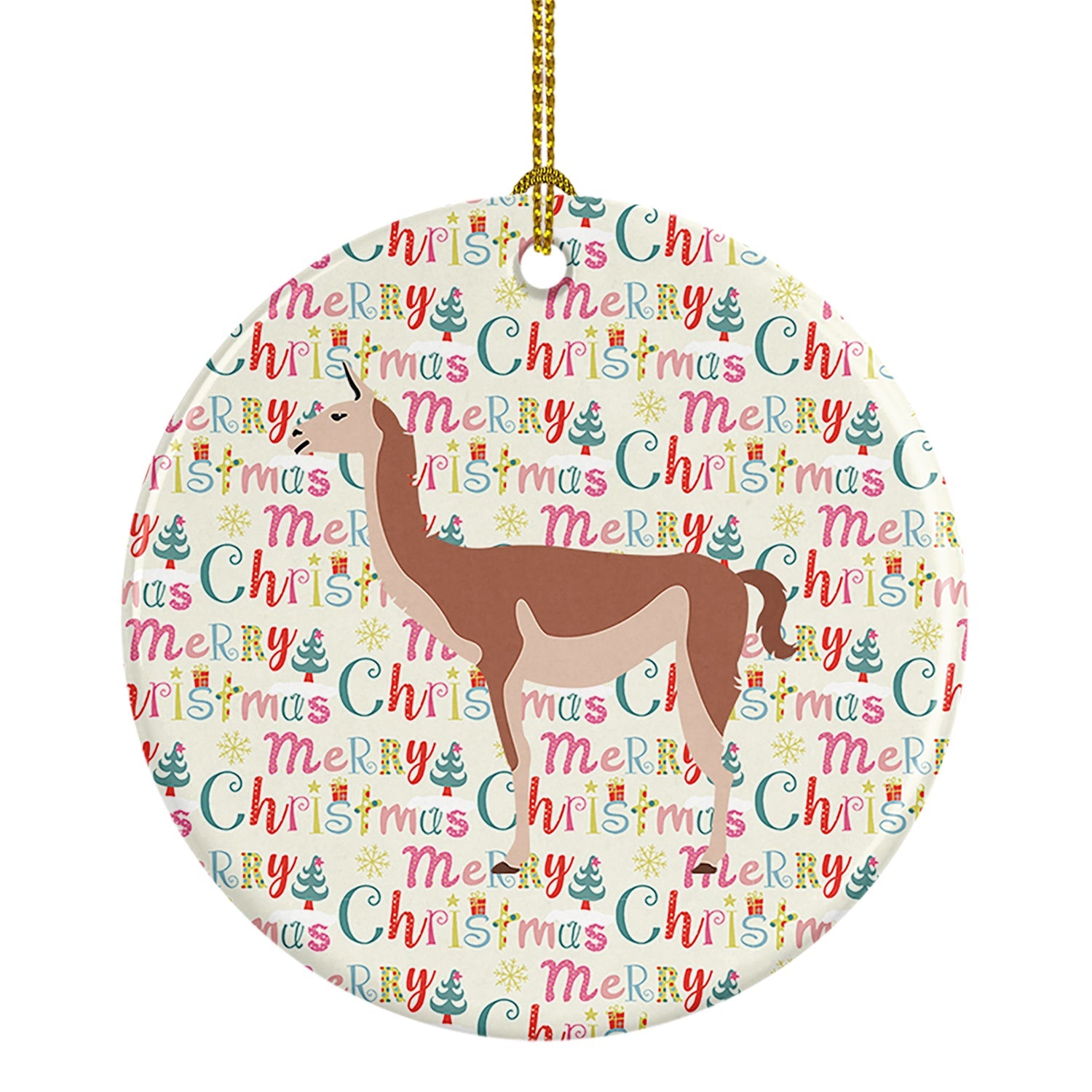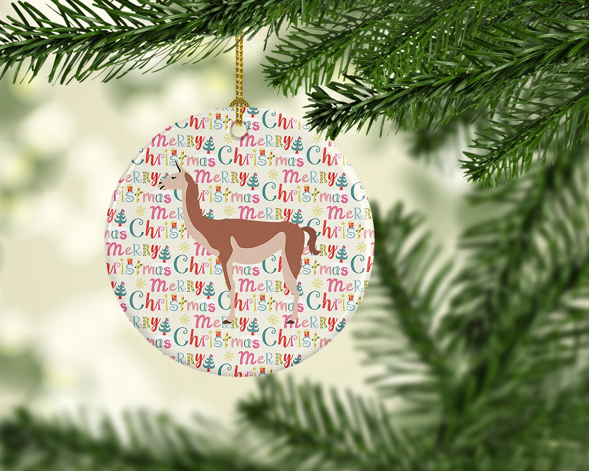 Decorate your space with our Christmas Guanaco artwork on a Ornament. Add a touch of personalized charm to your Christmas tree this holiday season with our Ceramic Ornament. Measuring 2.8125 inches in diameter, this round porcelain ornament beautifully reflects your festive lights, enhancing your holiday decor. The gloss surface sets off the vibrant, full-color artwork contributed by one of our talented artists, bringing a pop of color and joy to your tree. This Ceramic Ornament doesn't stop at being merely decorative. The white back is designed for personalization. Write a heartfelt message, mark a special year, or inscribe a date with a paint pen or a permanent marker to create a treasured memento. Please ensure you allow any personalization to dry thoroughly before handling to maintain the pristine finish. Included with the ornament is a delicate gold cord for easy hanging. Made in the USA, this Ceramic Ornament makes an exceptional gift for a pet sitter, teacher, family member, or anyone you wish to share a little Christmas magic with. With its blend of style, charm, and personal touch, it's a meaningful addition to any Christmas tree.