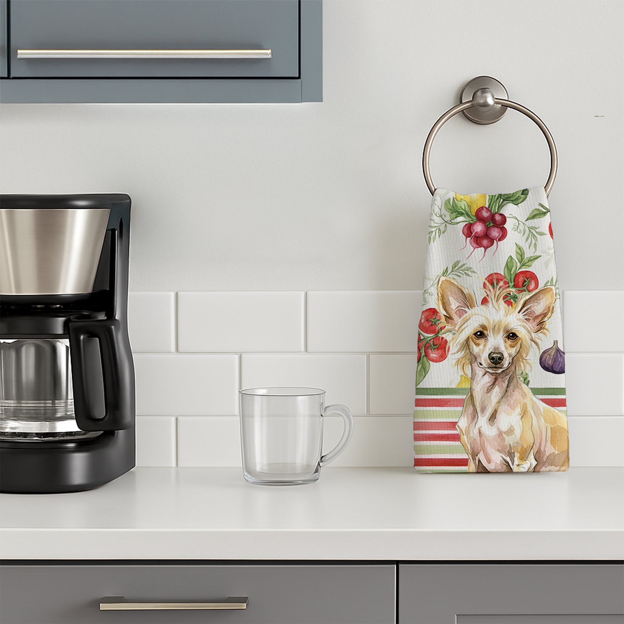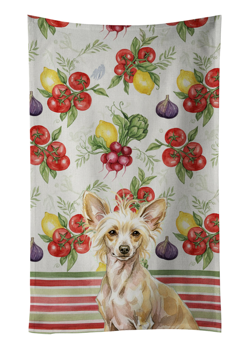 Kitchen Towel featuring breed specific Chinese Crested artwork. Bring cozy everyday charm to your sink or powder room with a plush velour towel featuring original watercolor artwork. The front is a soft, color-rich minky polyester that polishes glassware to a brilliant shine; the back is 100% white cotton terry loop for quick absorbency on hands, dishes, and counters. Artwork is dyed into the fibers for lasting color that won’t crack or peel. Finished edges keep the shape wash after wash. Size: 15" x 25". Machine wash; tumble dry low. Designed and printed in the USA.
