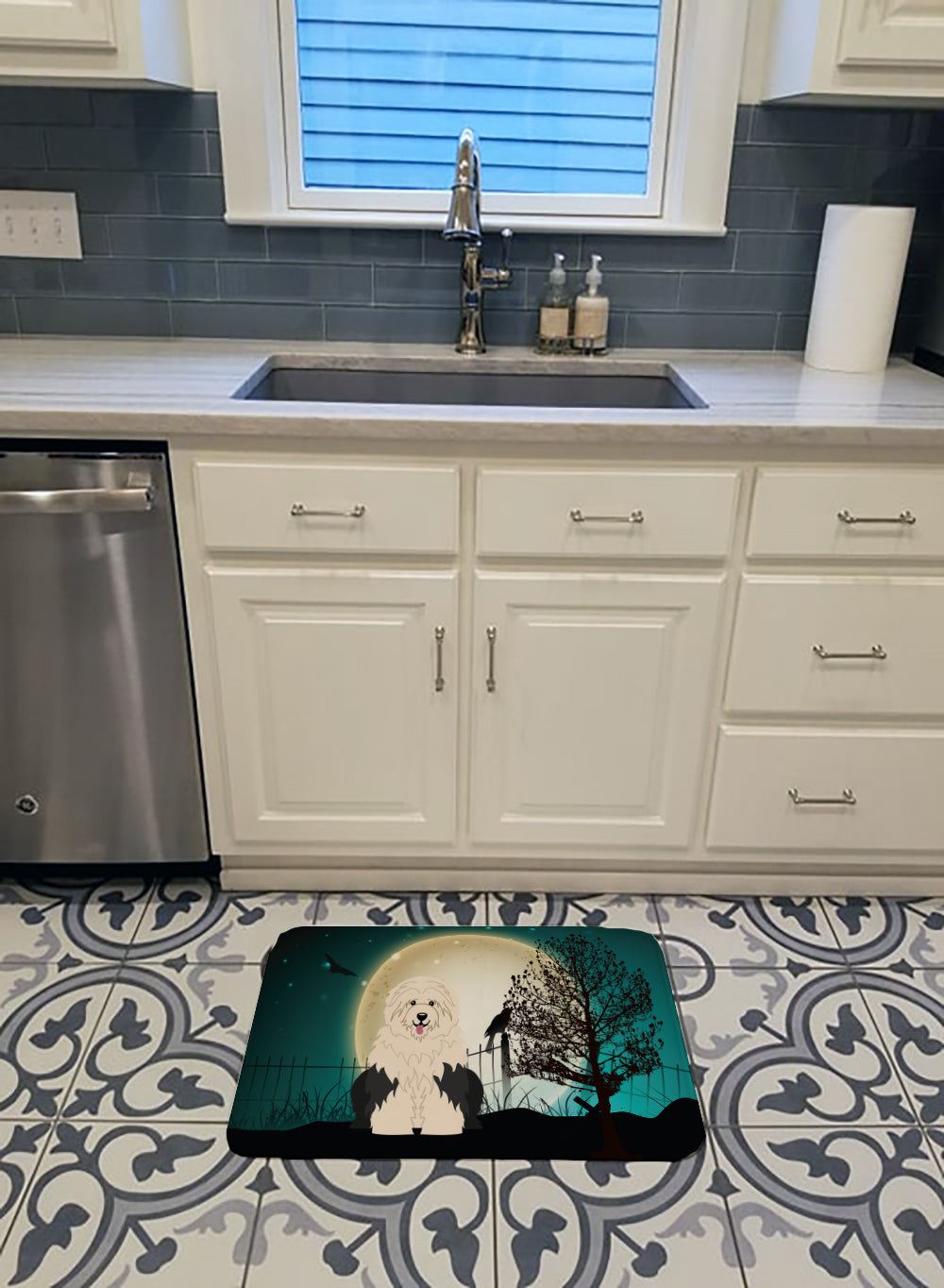 Decorate your space with our Halloween Old English Sheepdog artwork on a Floor Mat. Transform your floor into a work of art with Caroline's Treasures' Memory Foam Mat. This mat offers not only a stunning visual appeal but also a luxurious, plush feel that's incredibly comfortable to the touch. It's a versatile, machine-washable mat designed for both bath and kitchen use, ensuring you experience the best in comfort and convenience. Care Instructions: Maintaining this memory foam mat is a breeze. Simply follow the care instructions on the product tag. It's recommended to wash in cold water and dry on a low-temperature setting in the dryer. This ensures the mat retains its quality and longevity, allowing you to enjoy its beauty and comfort for a long time. Caroline's Treasures' Memory Foam Mat Machine Washable is the perfect blend of artistry, comfort, and practicality, making it a standout addition to any space. Upgrade your home decor with this versatile and stylish mat today.