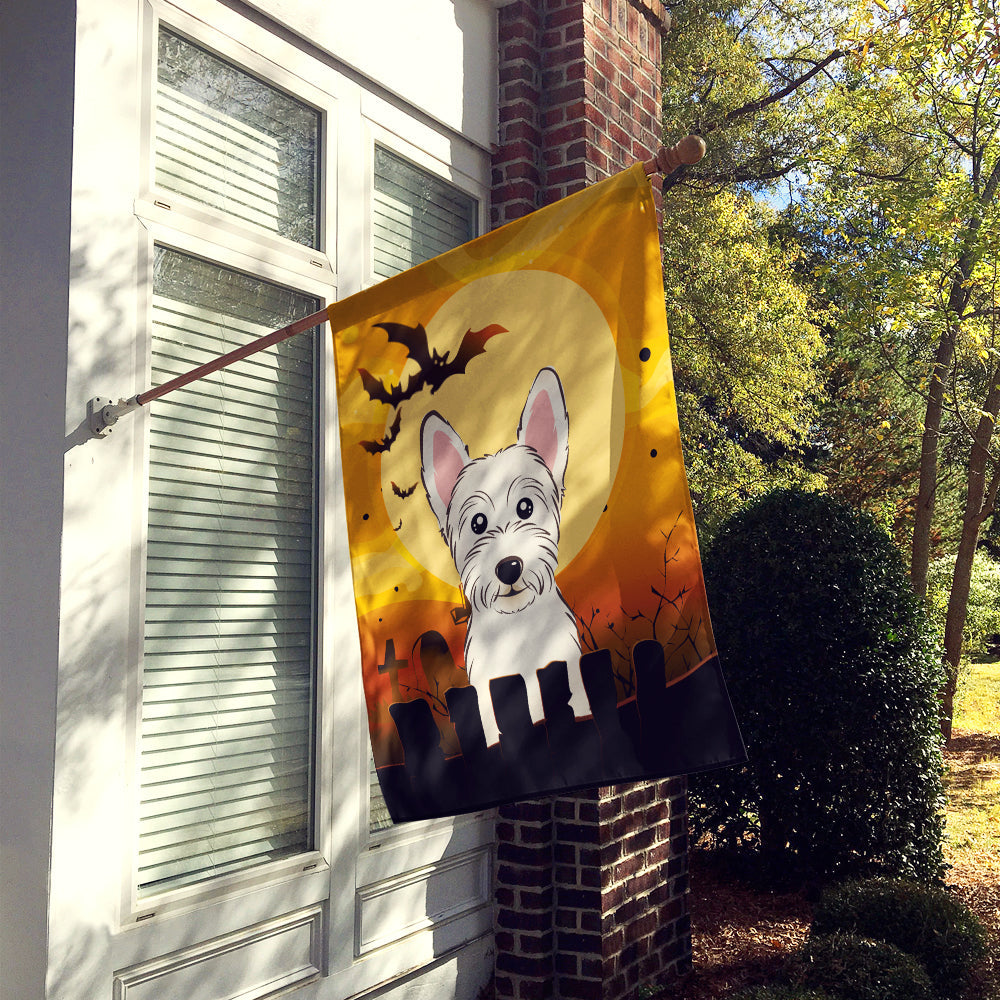 Decorate your space with our Halloween West Highland White Terrier artwork on a Large Flag. Presenting our Heavy Duty Polyester House Size Decorative Sleeve Pole Flag, a vibrant addition to enhance the aesthetic appeal of your home. This large decorative flag, measuring approximately 28 x 40 inches, offers ample coverage and visibility. Each flag is meticulously sewn and made individually, ensuring a unique piece that may slightly vary in size. It's a sleeve pole flag, designed to fit a standard decorative flag pole effortlessly. Please note that the flag pole and bracket are not included and should be purchased separately. What sets our flag apart is its dual-sided print. The design is mirrored on both sides of the fabric, allowing for uniform visibility regardless of the angle. Printed in full color, our flag showcases vibrant hues that truly stand out. To ensure lasting vibrancy and durability, the dyes are heat-set into the fabric. This ensures your flag remains bright and captivating through various weather conditions. Elevate the look of your home with our Heavy Duty Polyester House Size Decorative Sleeve Pole Flag!