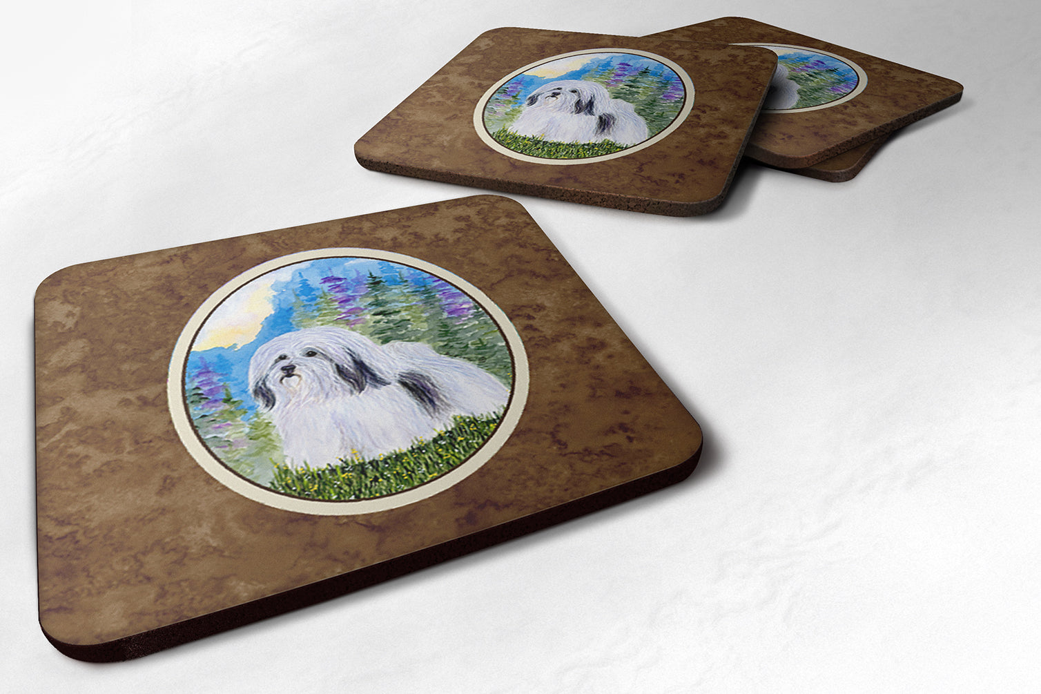 Decorate your space with our Havanese artwork on a Coaster set. Presenting our Set of 4 Foam Coasters, a stylish and practical addition to your table setting. Each square coaster, measuring 3 1/2 inches by 3 1/2 inches, is perfectly sized to accommodate various drinkware, from coffee mugs to tumblers. These coasters stand out with their full-color artwork, permanently dyed onto the material for a vibrant and fade-resistant finish. They're not just functional, they're a fashionable statement, adding a touch of flair to any gathering or event. Our foam coasters serve a dual purpose - they protect your table from water stains and are perfect for both hot and cold drinks. The material used is similar to that of our high-quality mouse pads, ensuring durability and heat resistance. These coasters are easy to maintain - simply wash them in the top of your dishwasher and lay flat to dry. The design won't come off, ensuring they retain their vivid colors for years. Pair them with one of our insulated coolers or huggers for a cohesive, thoughtful gift set. Enhance your beverage experience with our Set of 4 Foam Coasters.