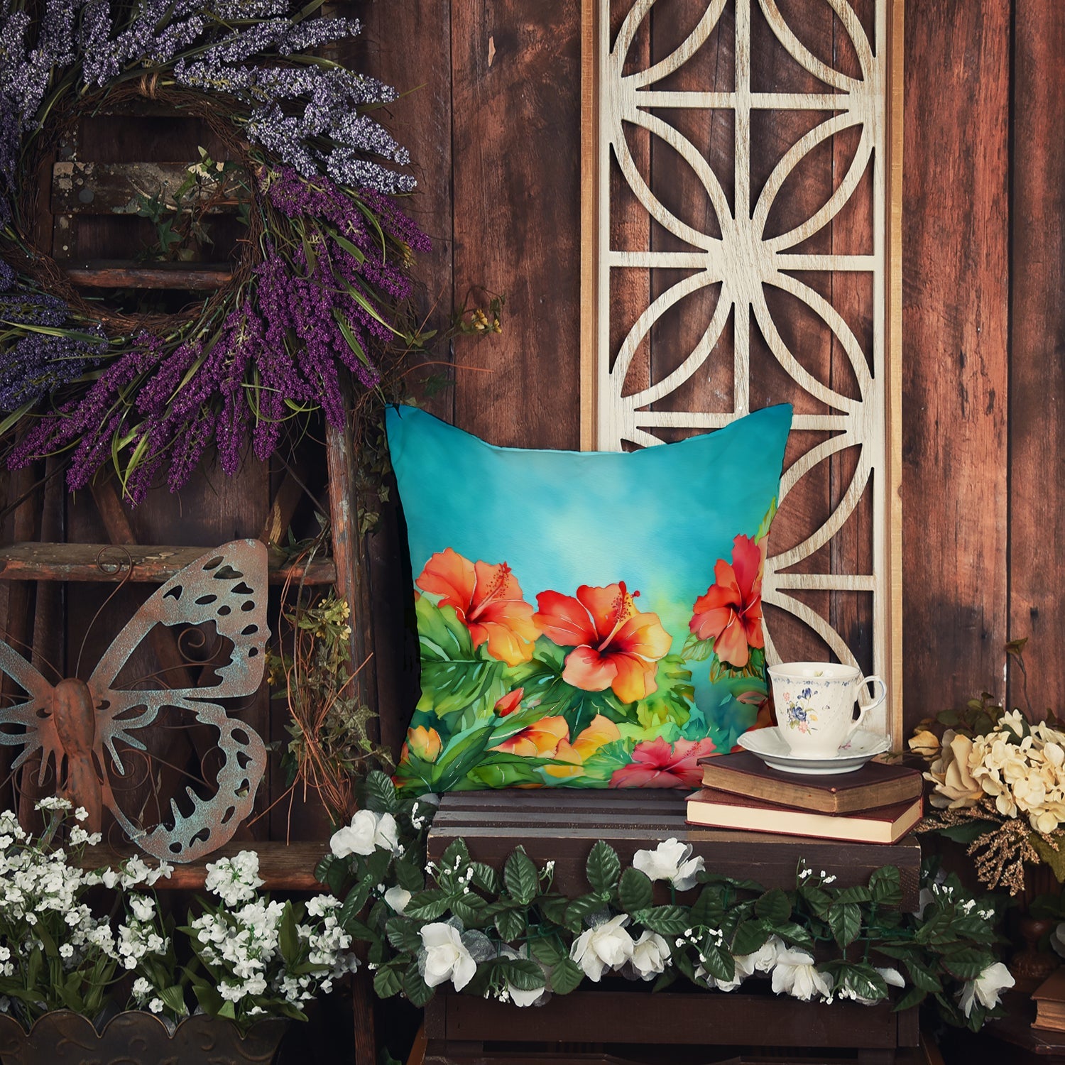 Throw Pillow featuring breed specific Hawaii Hawaiian Hibiscus artwork. Add a touch of vibrancy and comfort to your outdoor seating with Caroline's Treasures Fabric Decorative Pillow. Measuring approximately 14 inches by 14 inches, this outdoor pillow is crafted to elevate the appeal of your patio furniture, infusing it with vivid color and artistic flair. The pillow includes a 100% Polyester Fabric sham filled with a quality pillow form to provide superior comfort. Innovatively made from our brand new material, specifically woven for its water resistance, this pillow is designed for durability. The soft canvas fabric offers versatility in use, fit for your indoor couch or your outdoor patio, porch, or veranda. The fabric is dyed with colorfast dyes built for resilience against weather conditions, ensuring the pillow retains its beauty over time. Constructed by sewing three fabric pieces to create a sham, the polyester insert is then nestled inside to form the pillow, resulting in an overstuffed pillow that maintains its shape. Both the sham and the pillow insert are proudly made in the United States. As the pillows are handcrafted, there may be minor variations in size, further enhancing their unique charm. Experience comfort in style with Caroline's Treasures Fabric Decorative Pillow.