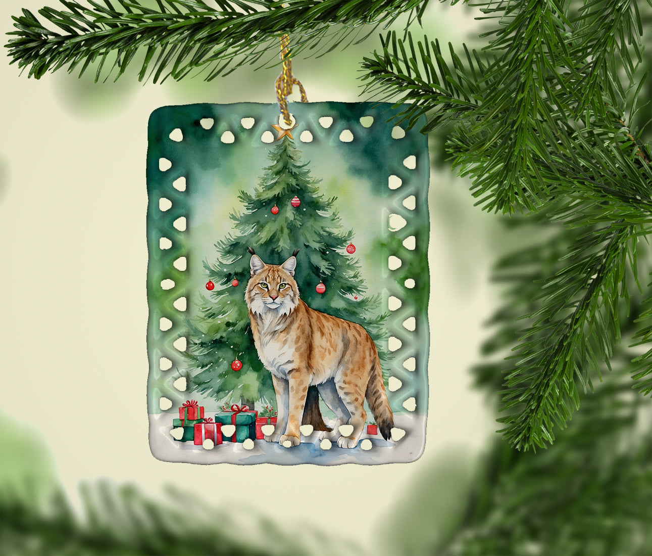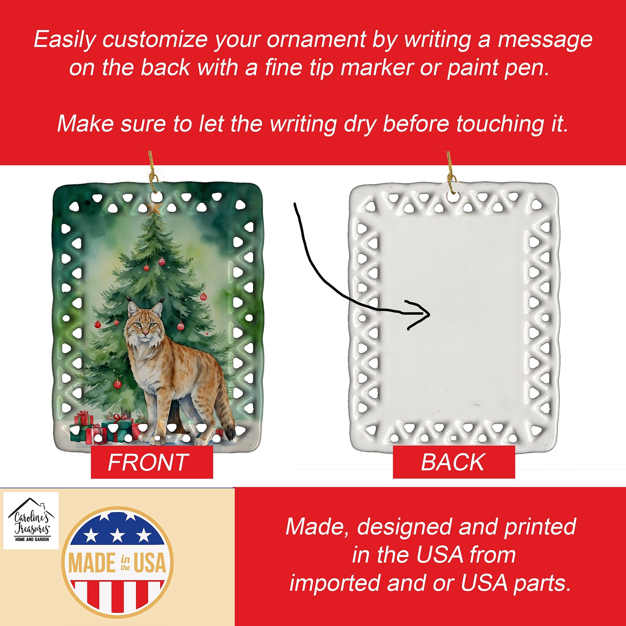 Porcelain Ornament featuring breed specific Highlander Lynx artwork. Celebrate Christmas with this Christmas Ornament. Add a unique, personal touch to your holiday decor with our Rectangular Lattice Porcelain Ornament. Perfect for creating cherished memories, this high-quality ornament shines under festive lights, reflecting warmth and joy throughout your Christmas tree. Crafted with a glossy finish, it showcases vibrant, full-color artwork contributed by our talented artists, ensuring your tree is adorned with a burst of color and holiday spirit. What sets this Porcelain Ornament apart is its customizable white back. Use a paint pen or permanent marker to write a heartfelt message, commemorate a special year, or mark an unforgettable date, turning this ornament into a keepsake that will be treasured for years to come. For best results, allow any personalization to dry thoroughly before handling. Each ornament comes complete with a delicate gold cord, making it easy to hang and display. Proudly made in the USA, this ornament measures 3.375 x 2.625 inches and is a thoughtful gift for pet sitters, teachers, family members, or anyone who would appreciate a little extra holiday magic. Bring style, charm, and a touch of personal meaning to your Christmas tree with this beautifully designed ornament..