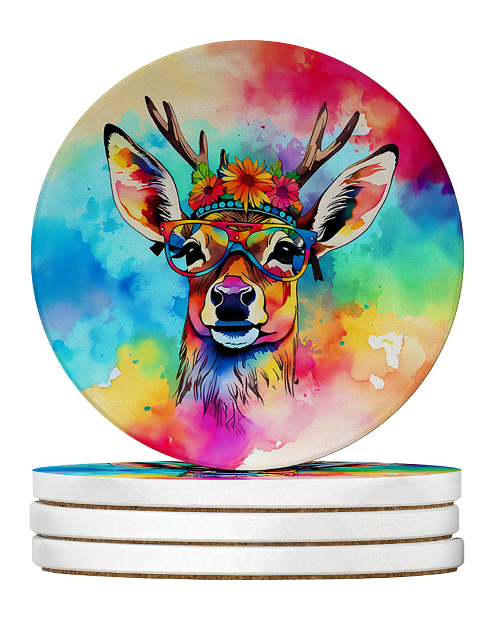 Large Sandstone Coasters Pack of 4 featuring breed specific Deer artwork. Introducing Caroline's Treasures Large Sandstone Coasters Pack of 4, the perfect addition to your home decor. Each coaster measures nearly 4 inches and is made from absorbent sandstone with a cork backing. Designed and printed in the United States, these coasters feature artwork from Caroline's Treasures' talented artists. Protect your countertops and tables from hot and cold drink condensation with these absorbent coasters. They efficiently absorb moisture, ensuring your surfaces stay dry and clean. Choose from a wide range of designs to update and enhance your decor or give them as a thoughtful gift for any occasion. Cleaning is a breeze—simply wipe the coaster with a damp towel to remove any spills or stains. Each set comes in a brown gift box, making it ready to be wrapped for that special person in your life. These absorbent sandstone coasters also make an excellent housewarming gift, providing both practicality and style. Celebrate birthdays, Mother's Day, Father's Day, Thanksgiving, Christmas, Teacher's Appreciation Day, or simply show someone you care with these versatile and charming coasters. Caroline's Treasures Large Sandstone Coasters Pack of 4 is the perfect happy gift for any occasion.