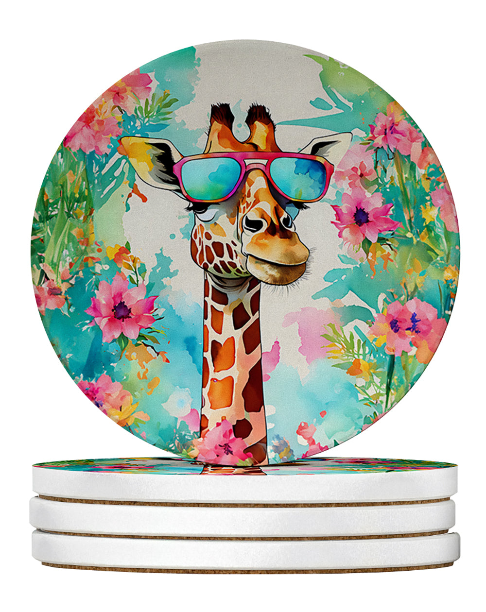 Large Sandstone Coasters Pack of 4 featuring breed specific Giraffe artwork. Introducing Caroline's Treasures Large Sandstone Coasters Pack of 4, the perfect addition to your home decor. Each coaster measures nearly 4 inches and is made from absorbent sandstone with a cork backing. Designed and printed in the United States, these coasters feature artwork from Caroline's Treasures' talented artists. Protect your countertops and tables from hot and cold drink condensation with these absorbent coasters. They efficiently absorb moisture, ensuring your surfaces stay dry and clean. Choose from a wide range of designs to update and enhance your decor or give them as a thoughtful gift for any occasion. Cleaning is a breeze—simply wipe the coaster with a damp towel to remove any spills or stains. Each set comes in a brown gift box, making it ready to be wrapped for that special person in your life. These absorbent sandstone coasters also make an excellent housewarming gift, providing both practicality and style. Celebrate birthdays, Mother's Day, Father's Day, Thanksgiving, Christmas, Teacher's Appreciation Day, or simply show someone you care with these versatile and charming coasters. Caroline's Treasures Large Sandstone Coasters Pack of 4 is the perfect happy gift for any occasion.