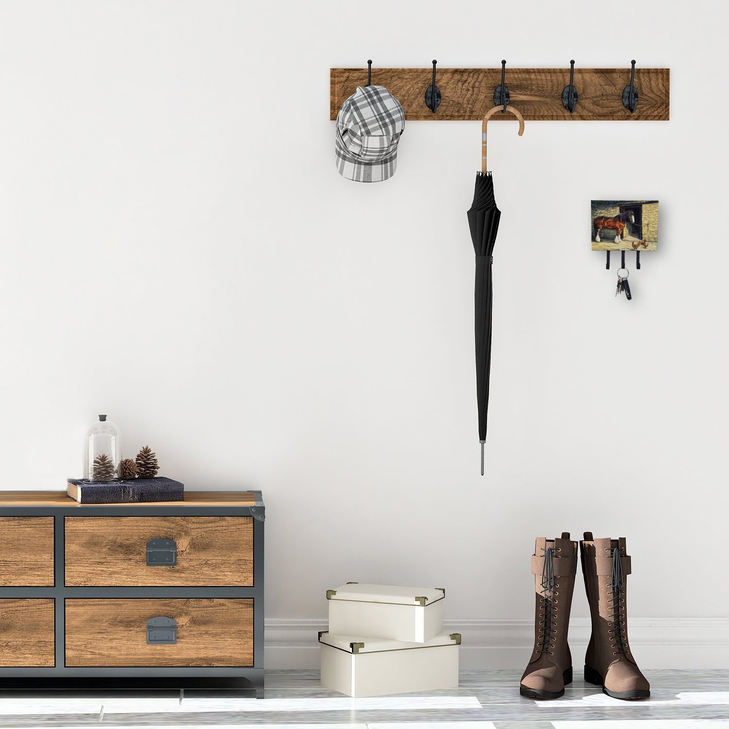 Decorate your space with our Horse artwork on a Wall Hook. Transform your home or office's organization with the Caroline's Treasures Triple Leash or Key Holder. Offering versatility and style, this triple hook holder is perfect for holding keys, leashes, or just about any other small items you need to keep at hand. Crafted with a hardboard tile mounted to a metal rectangle, this holder's structure speaks of durability and reliability. Each hook hangs down about 2.5 inches from the base, providing ample space for hanging your essentials. Despite its robustness, this triple hook holder remains simple to install. It comes with a 1.5-inch long hanger attached to the metal plate, ensuring easy installation with a screw or paneling nail. This holder, measuring 6 x 2 x 9 inches and weighing only 1 lb, is a compact and lightweight solution to your storage needs. Ideal for home or office use, the Caroline's Treasures Triple Leash or Key Holder enhances organization while adding a touch of sophistication to your space.
